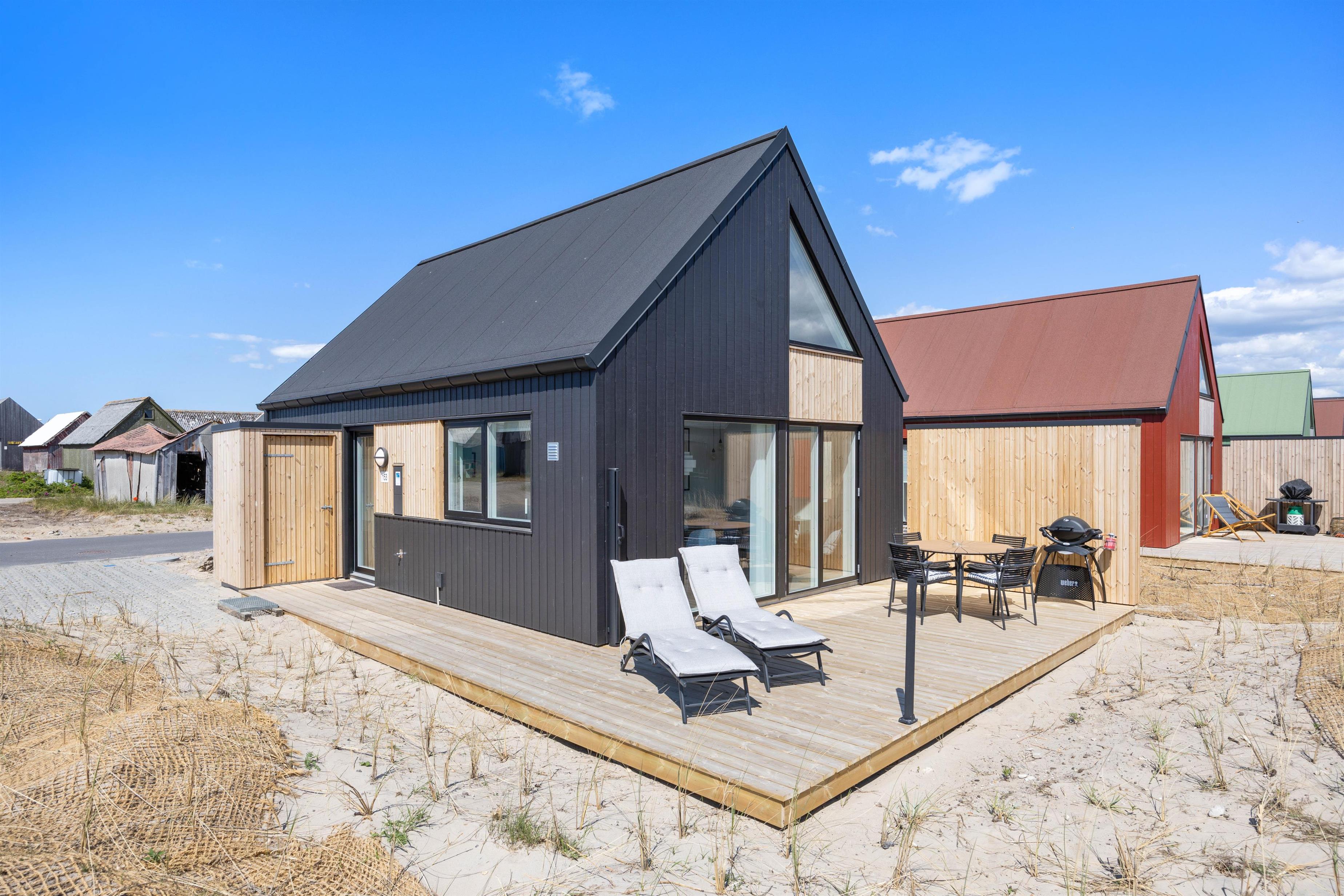 Dette moderne sommerhus er beliggende på en naturgrund på Langsand i Hvide Sande. Herfra er der blot et stenkast til Tyskerhavnen og Ringkøbing Fjord. Det moderne sommerhus kan rumme 4 personer samt 1 hund, og det er derfor muligt også at medbringe sin bedsteven på ferien. Ankommer I i el-bil, er det muligt at lade den med sommerhusets ladestik, I skal blot selv medbringe et kabel.