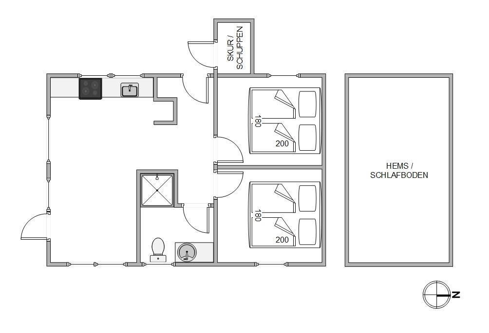 På badeværelset er der både vaskemaskine og tørretumbler samt gulvvarme, så I om vinteren også kan holde fødderne varme. I sommerhuset er der 2 soverum med dobbeltsenge samt hems over disse værelser, hvor man kan trække sig tilbage og slappe af.