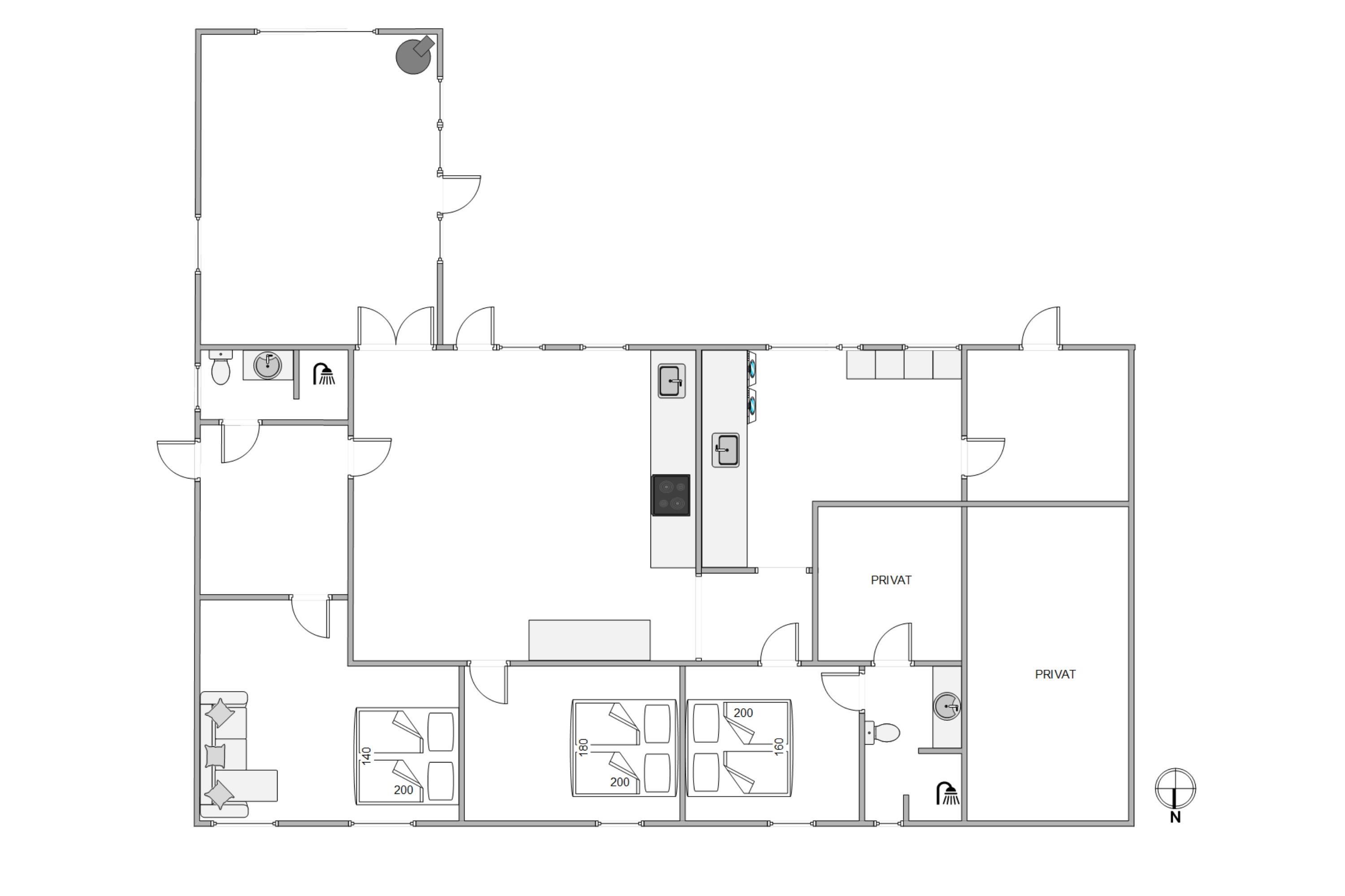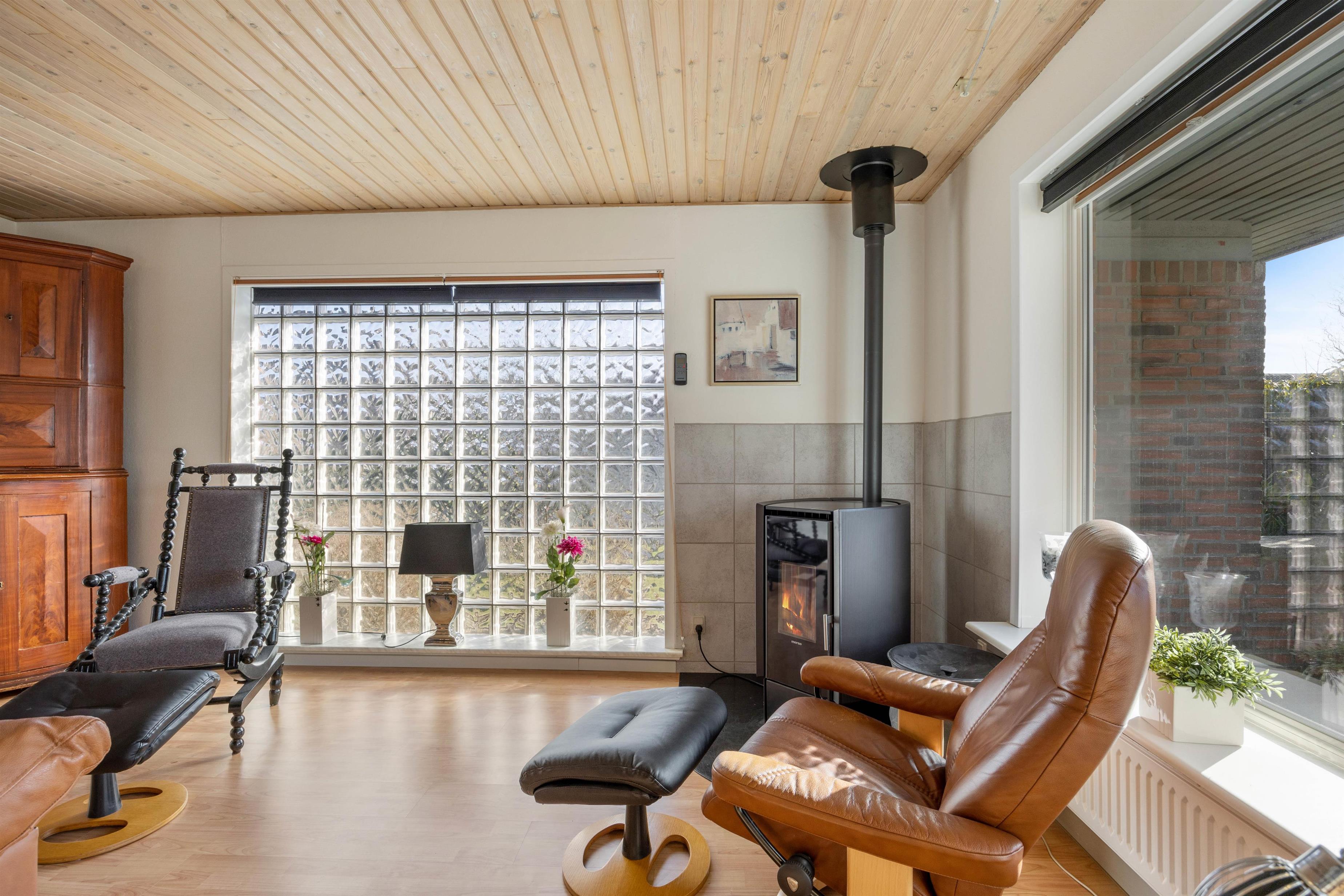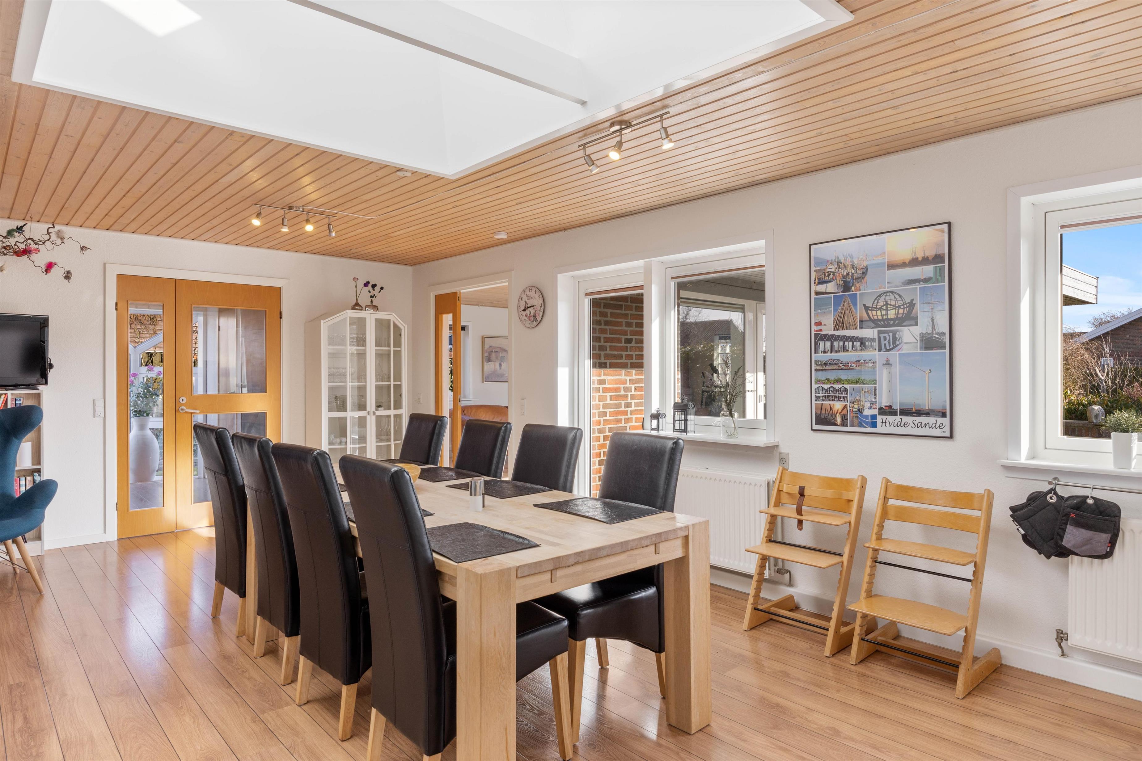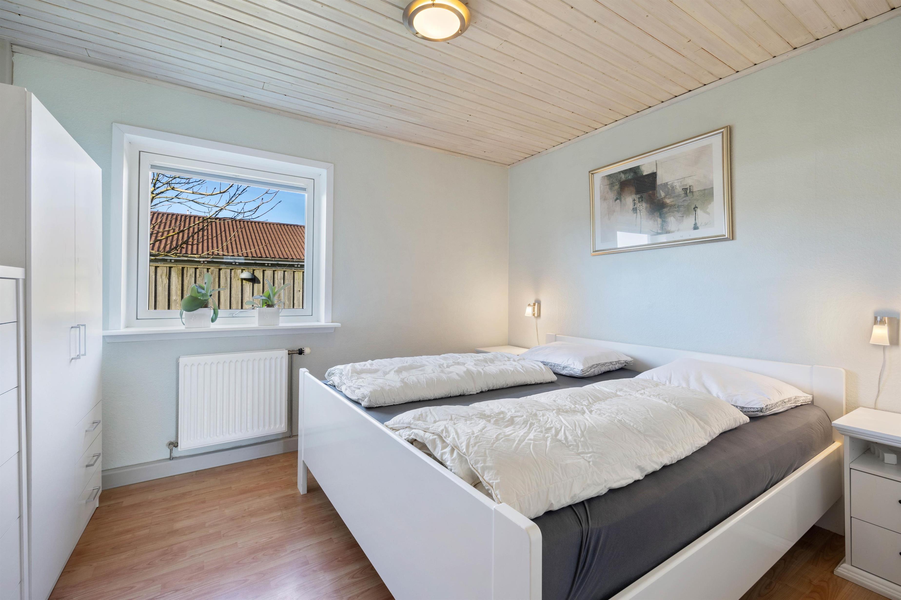 Stuen er desuden et stort, lyst rum med mange vinduer og behagelige siddepladser. Her kan du krølle dig sammen med et tæppe på sofaen sammen med din yndlingsbog, mens du kan høre træet knitre i brændeovnen i baggrunden. Der er 3 store soveværelser med dobbeltsenge til rådighed, hvor I alle kan få en god nats søvn. For at I kan starte dagen i ro og mag og uden stress om morgenen, er der to badeværelser med behagelig gulvvarme i dette feriehus. Derudover sørger husets vaskemaskine og tørretumbler for rent og tørt vasketøj.