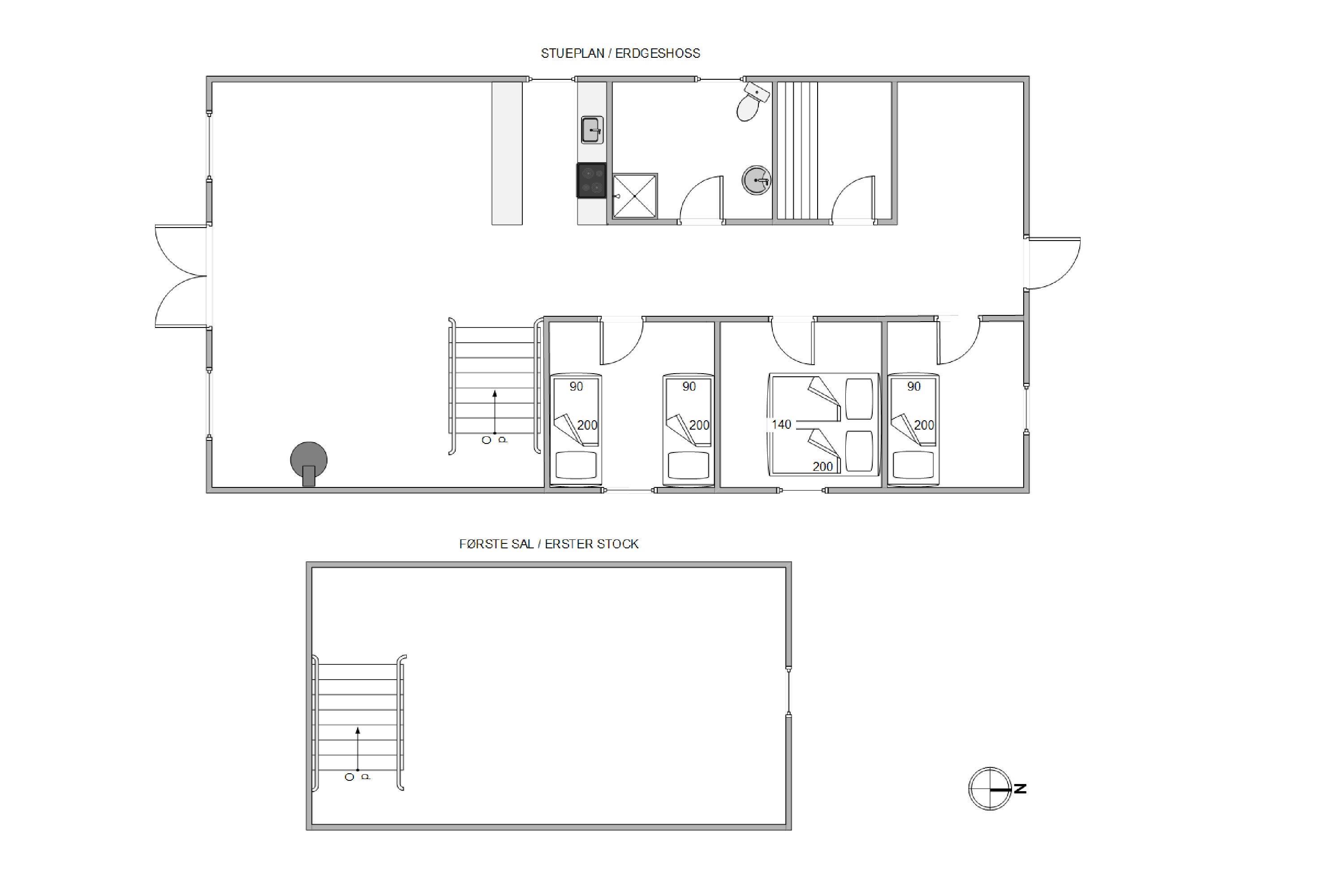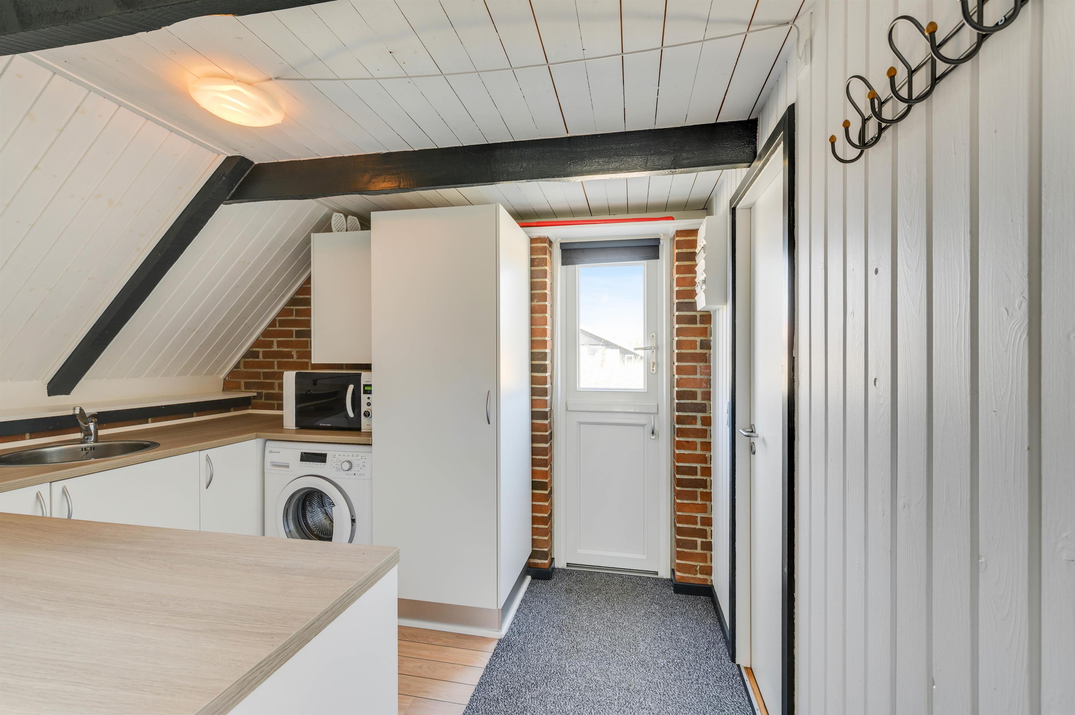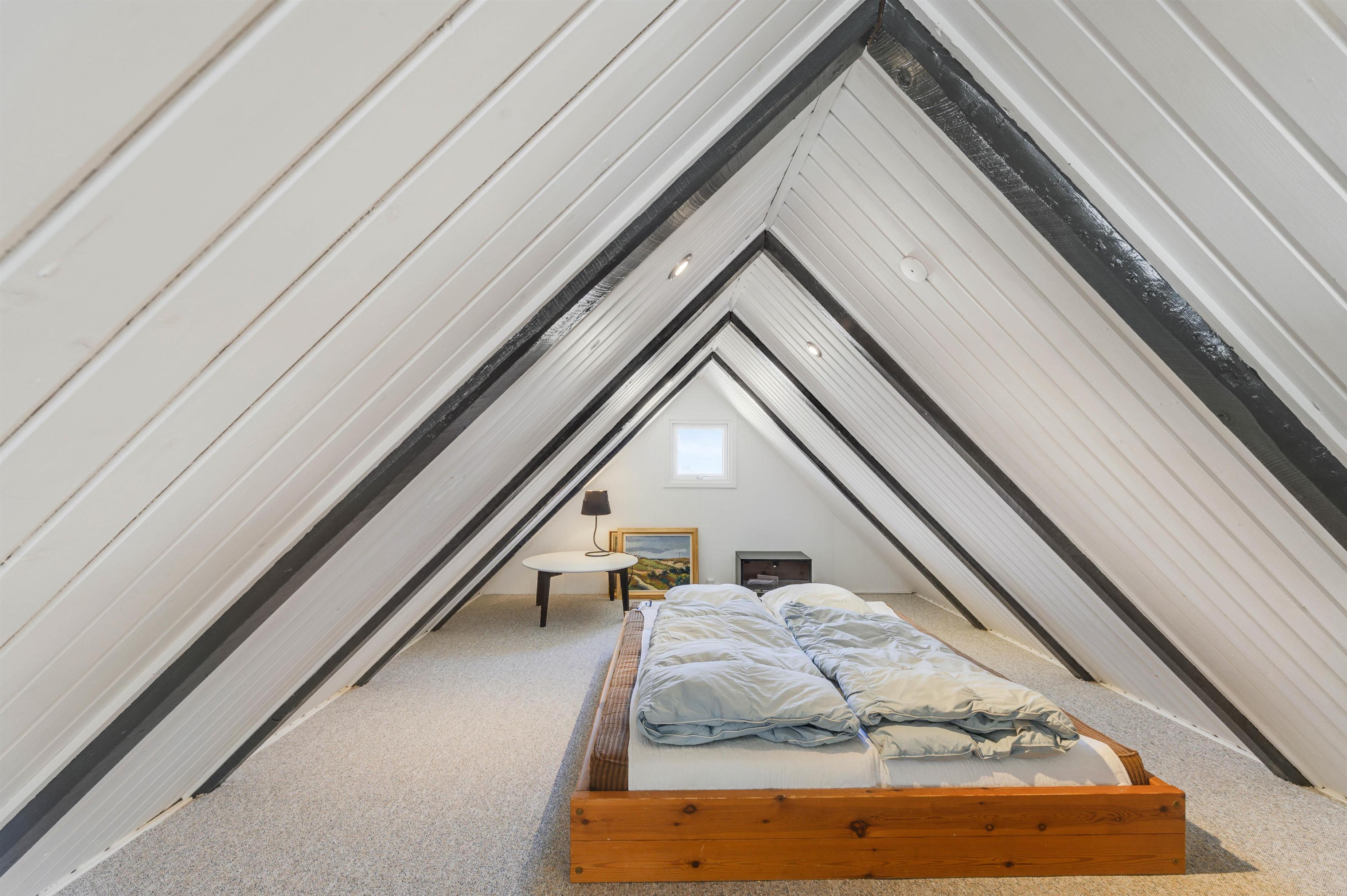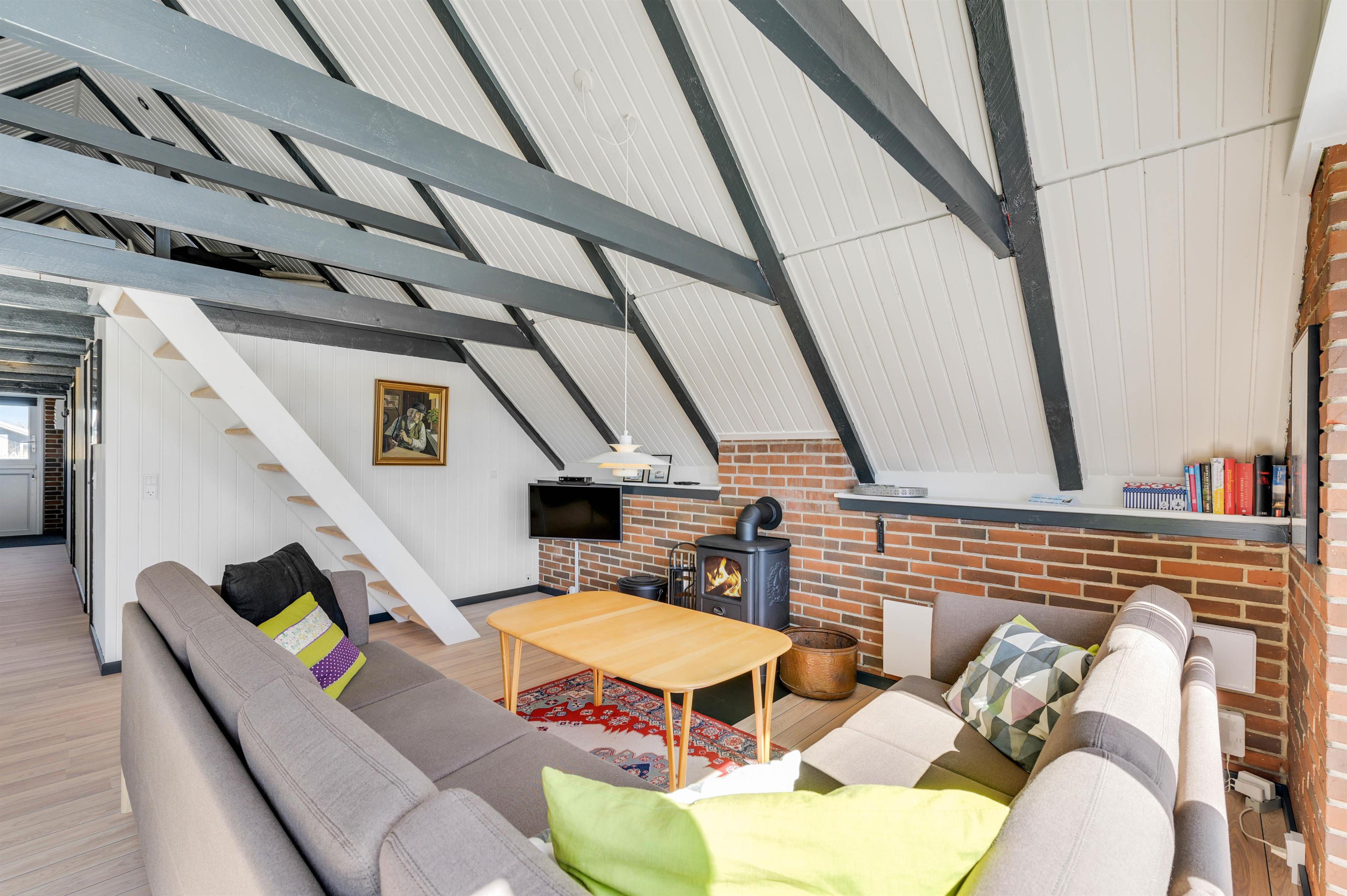 I det hyggelige sofahjørne kan I smide benene opad med en god film og en gang hjemmelavede popcorn, og på de frostklare vinterdage står brændeovnen for feriehyggen. I stueafdelingen finder I også spisebordet, og der gemmer sig en ekstra lille hyggekrog for enden af trapperne, nemlig en hems med sækkestole, ekstra sovepladser og eget fjernsyn.