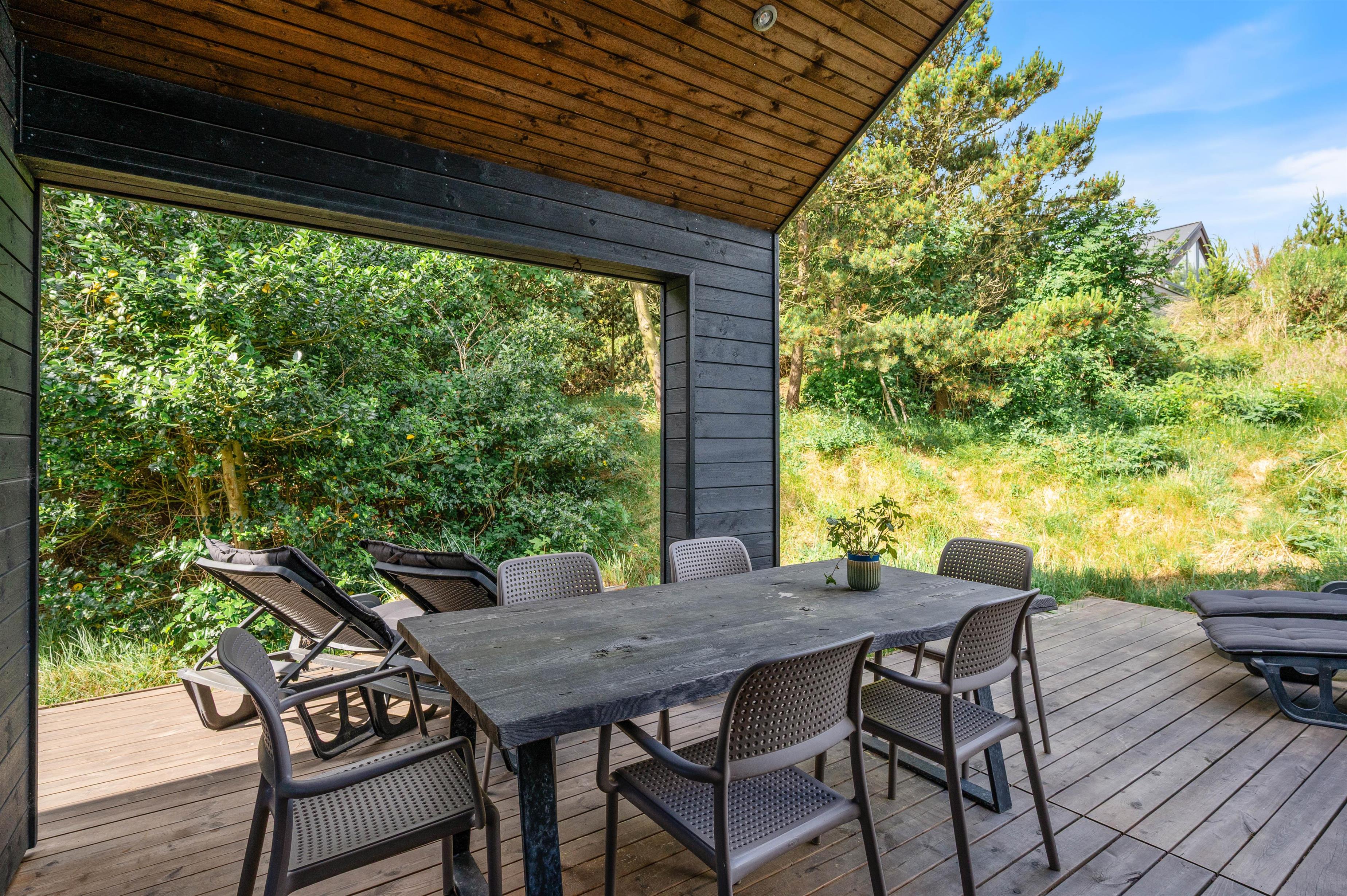 Mod sydvest finder I både en overdækket og en åben terrasse. En udebruser garanterer fra april til november en frisk afskylning efter en dukkert i det skønne Vesterhav.
