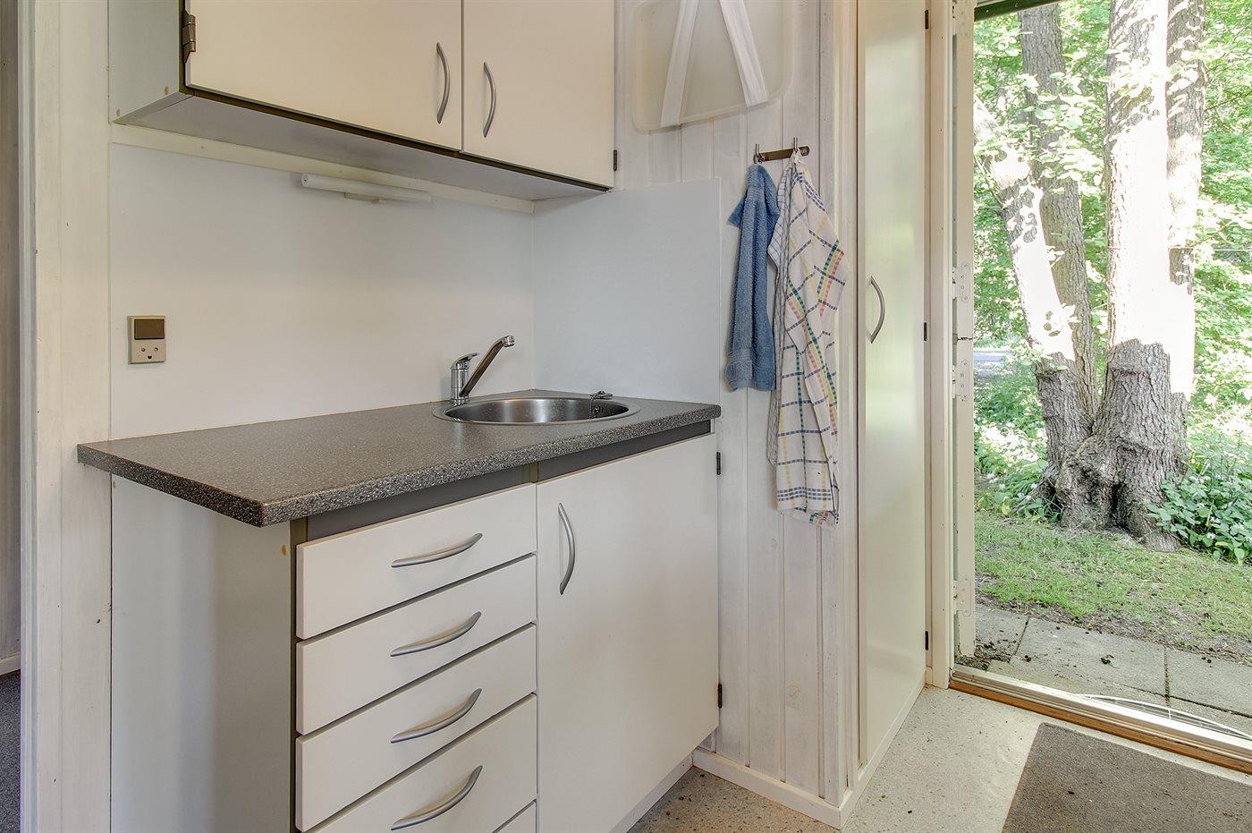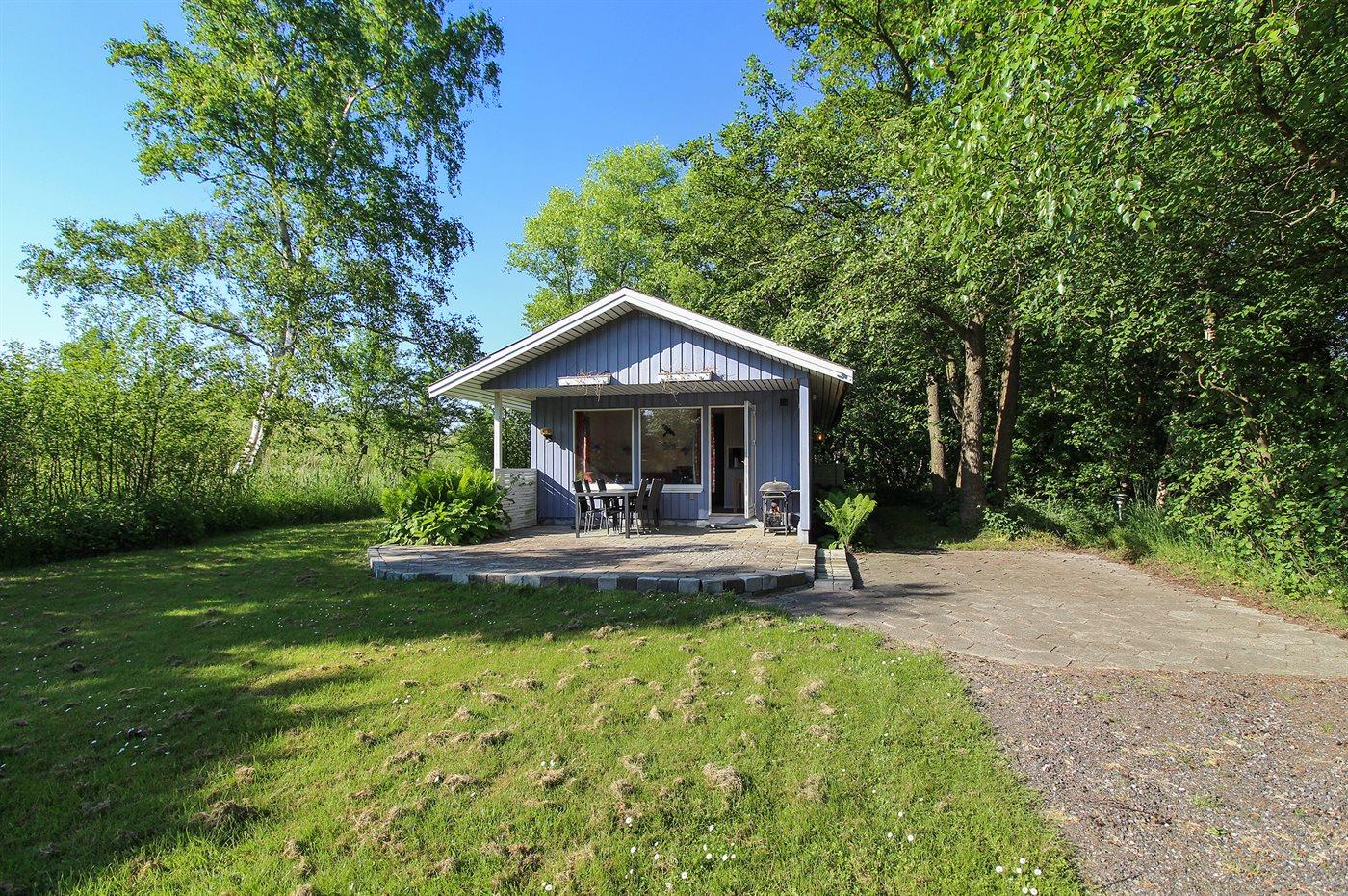 Huset ligger i udkanten af et sommerhusområde nær vandet.