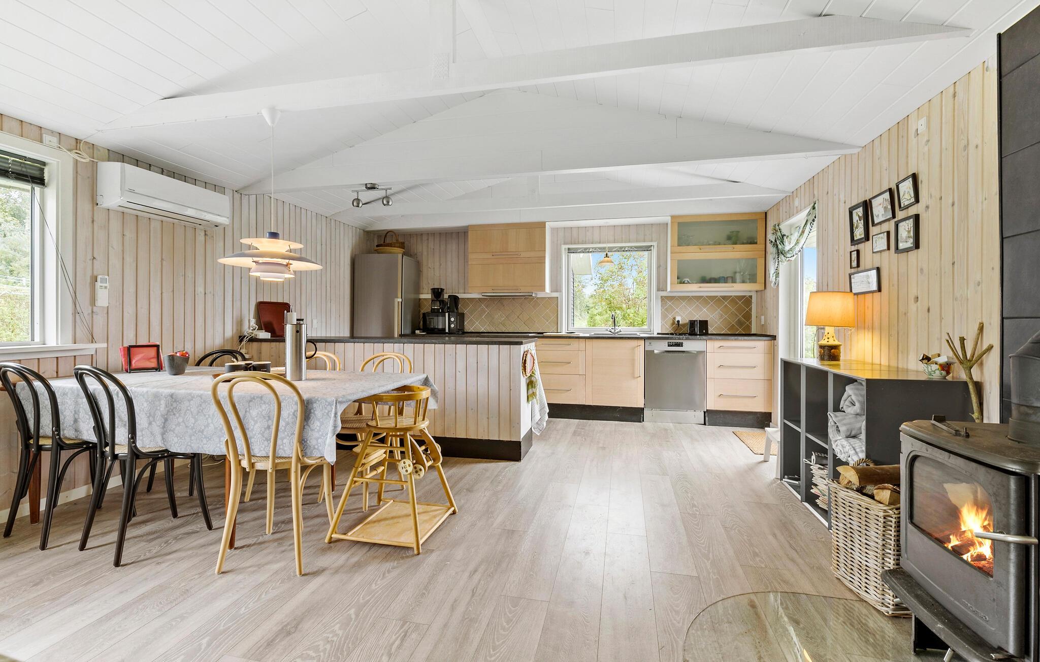 Dette familievenlige feriehus i Hyllingeriis byder på en hyggelig atmosfære med klassisk træindretning, der straks skaber en hjemlig stemning. Uanset om I samles til sjove spilleaftener i stuen eller varmer jer foran brændeovnen, vil jeres tid sammen blive et højdepunkt. Nyd morgenkaffen på terrassen, mens børnene leger i den rummelige have. Om aftenen kan I samles omkring bålpladsen, riste snobrød og marshmallows og nyde naturens ro.