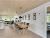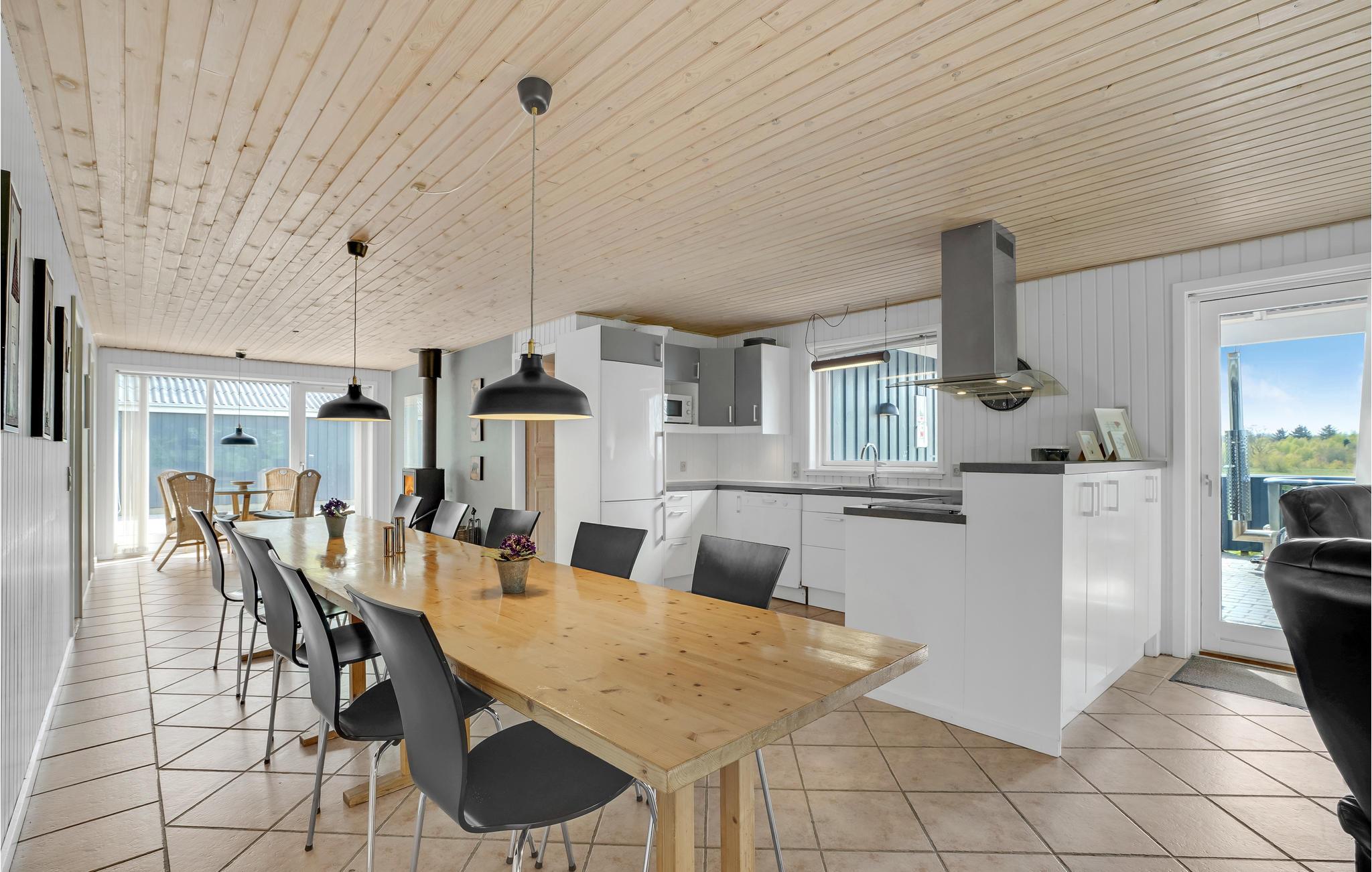 I den lyse stue med ludbehandlede vægge og lofter er der behagelige og hyggelige fyrretræsmøbler samt udgang til en delvist overdækket terrasse. I både stue og køkken er der flotte klinkegulve, og i værelserne er der tæpper. I det store og nydelige badeværelse med gulvvarme er der spabad, som står klar til et dejligt massagebad efter en gåtur i området. Hvis I er til afslapning i det fri, kan I også hoppe i vildmarksbadet udenfor.