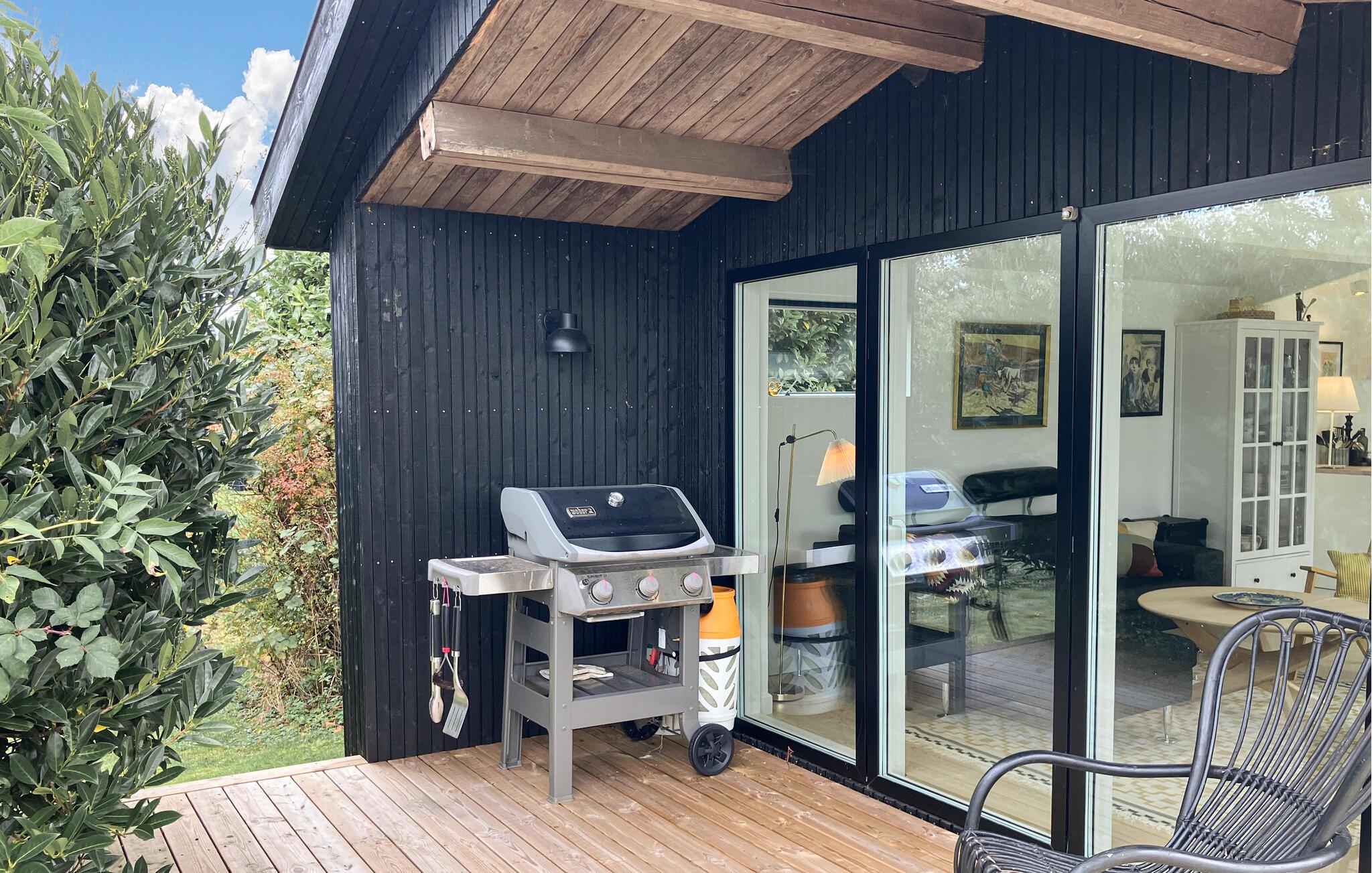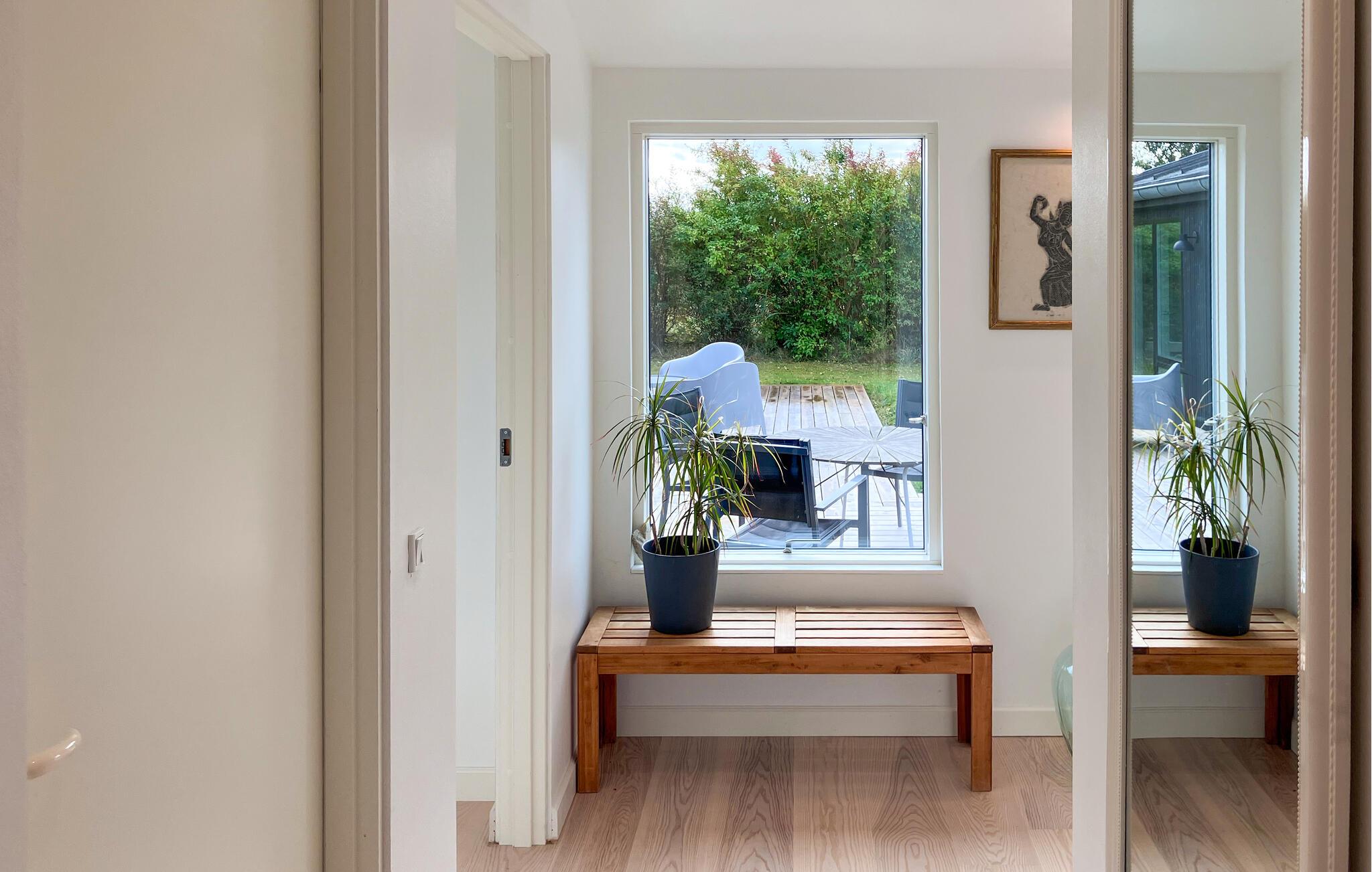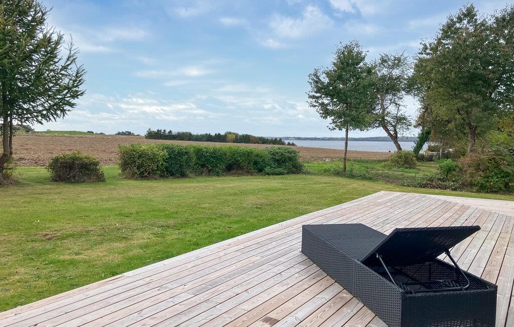 Tilbring skønne timer på den store træterrasse, der strækker sig langs hele husets facade. Brug ferietiden til at nyde en kop kaffe i fred og ro, eller slap af i havemøblerne med udsigt over fjorden. Tænd op i grillen på milde sommeraftener, og lad dagen slutte i en rolig og behagelig stemning. Den store have giver plads til leg, bevægelse og afslapning.