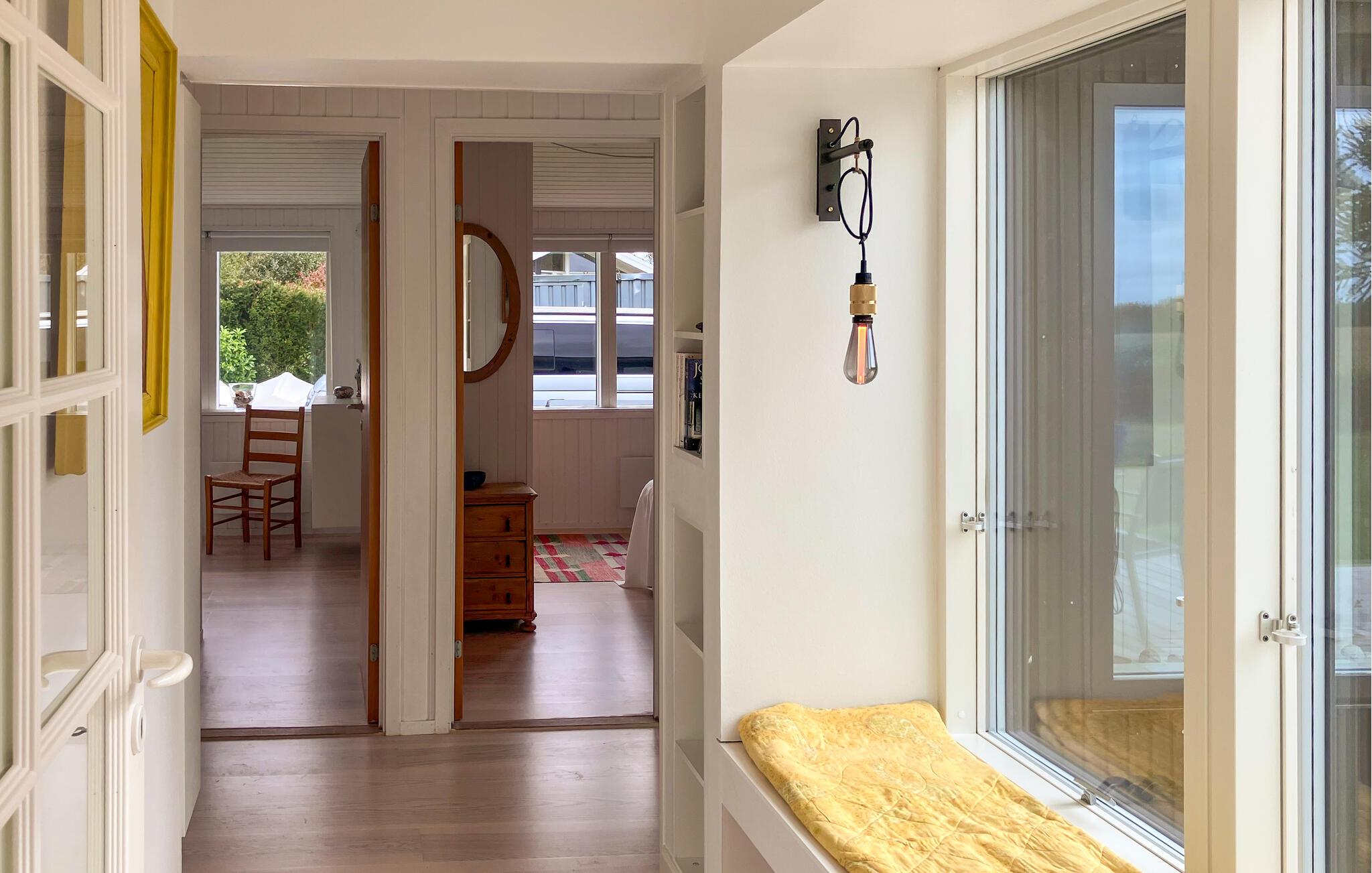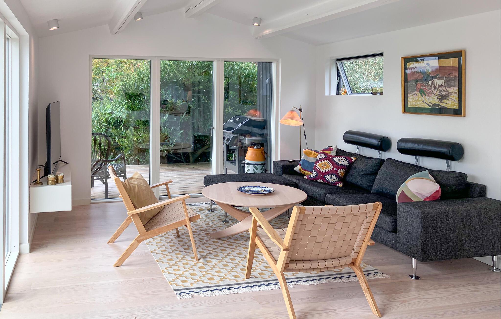 Oplev afslappende dage i jeres lyse feriehus, der kombinerer komfort med en skøn beliggenhed ved Isefjorden. Her kan I holde ferie i rolige omgivelser med masser af plads til afslapning og en vidunderlig udsigt over det bløde landskab. Den åbne stue med store vinduespartier forener inde- og udeliv i en harmonisk helhed. Sæt jer godt til rette i sofaen, og nyd udsigten til naturen, eller en film på fjernsynet. Køkkenet egner sig perfekt til hyggelige madlavningsaftener, hvor I samles omkring det store spisebord.