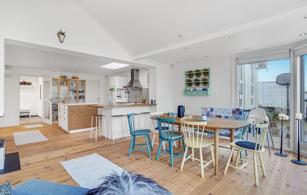 Glæd jer til en dejlig familienferie i dette fantastiske hus. Her glemmer man hurtigt alt om den travle hverdag. Huset har et vidunderligt lyst og giver jer gode afstressende rammer, så her kommer I helt automatisk ned i tempo. Den store stue giver et dejligt sted at samles eller hygge jer med forskellige aktiviteter i samme rum. Efter en lang dag på farten er det skønt at læne sig tilbage i sofaen, mens ilden knitrer i brændeovnen. På de solrige dage kan I sætte jer med morgenmaden på terrassen og planlægge dagens aktiviteter.