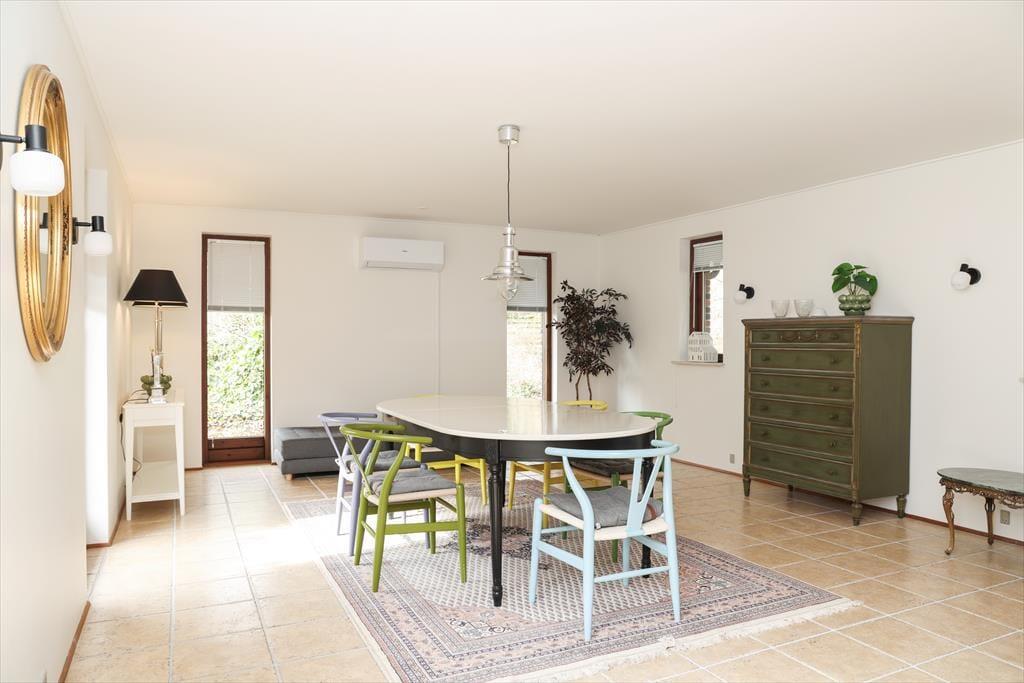 Denne pragtfulde herskabeligt indrettede villa til 6 personer, med kæmpe ugenert og lukket have, indbyder til ferie i skønne omgivelser og nær bademulighed.