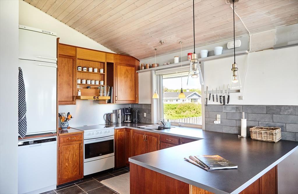 I sommerhuset, vil du med det samme fornemme den gode stemning. Du vil hurtigt få skuldrene ned og mærke, at det endelig er tid til ferie. Den skønne stue i forbindelse med det åbne køkken gør det muligt for dig, der står for madlavningen, at være en del af fællesskabet, selvom der er gang i gryderne. Hvis I tænder op i brændeovnen, efter at børnene er lagt i seng, og deler en flaske vin mens samtalen flyder, kan det kun blive en hyggelig aften.