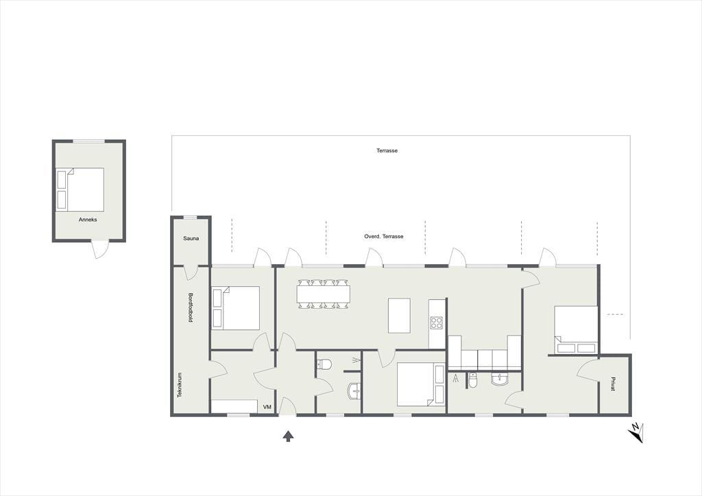 Lækker stue hvor du kan nyde en kaffe, fordybe dig i en god bog eller I kan spille et slag kort. Spisestue i forbindelse med skønt åbent køkken, her er der mulighed for at hjælpes med tilberedning af en god frokost. Der er tre dejlige soveværelser, alle med dobbeltsenge. Der tilhører ligeledes to fantastiske badeværelser med brus samt en skøn sauna. Der er tv-pakke, playstation og bordfodbold til rådighed. I annekset er der dobbeltseng. Husk også at benytte husets helt unikke terrasse, der er opdelt i flere afdelinger. Her er det oplagt at komme et par gode bøffer på grillen, skænke lidt bobler i glasset eller bare nyde solen fra morgen til aften og den smukke udsigt over fjorden. Alt fremstår lyst, moderne særdeles indbydende og meget, meget lækkert.