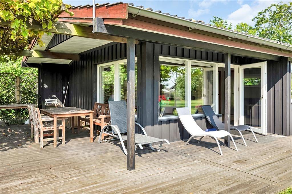 Fra terrassen med kig til vandet, kan du opleve den dejlige have eller bare nyde solen fra morgen til aften. Hvis solen bliver for skarp, er det skønt at sidde under vinen og få en drink, mens I lytter til fuglenes sang. Sommerhuset er beliggende i roligt, eftertragtet og særdeles naturskønt område på Tuse Næs. Hvis I er til aktiviteter ved fjorden er det placeret helt perfekt. Her er rigtig gode muligheder for både at fiske og bade, eller du kan tage dig en kajaktur og virkelig mærke fjorden.