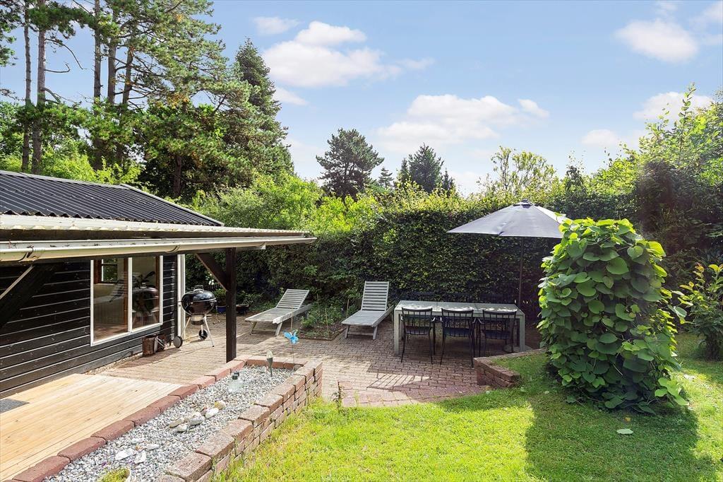 Nyd den private have med skrånende græsplæne, hvor I finder en overdækket og en åben terrasse. Der er grill og liggestole, så I kan solbade, når vejret er godt eller bare nyde milde aftener med lækre måltider.