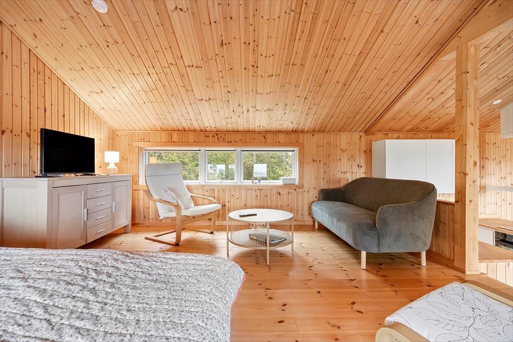 Kom ind i dette nybyggede hus fra 2025, alt udført i træ så det passer til omgivelserne, huset indeholder åben køkken/spiseplads og stue 2 trin op- med dobbelt soveplads og fantastisk udsigt over Isefjorden.