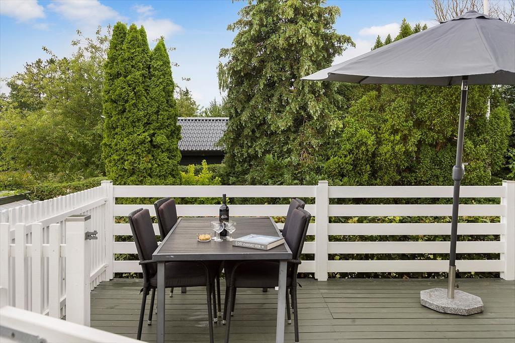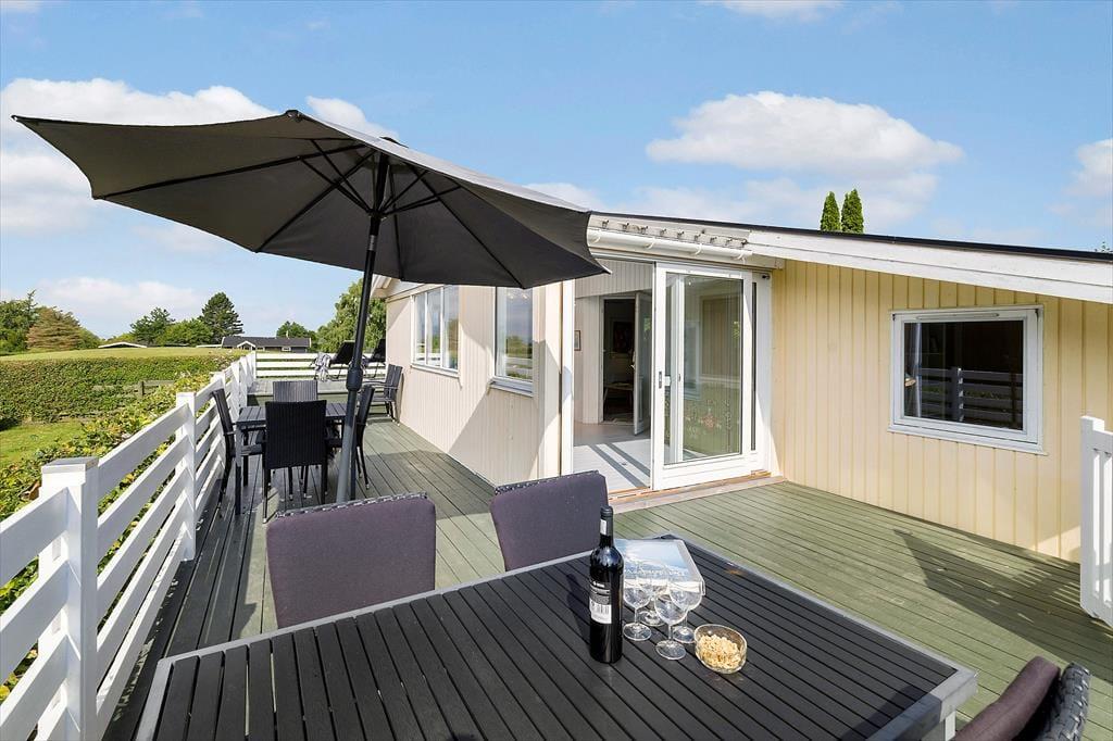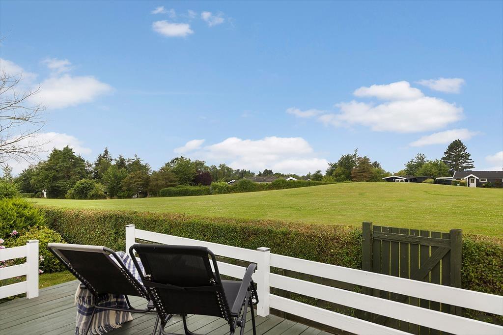 Sommerhuset er beliggende i et roligt område, ugenert fra naboen. Grunden er med god randbeplantning, så du kan sidde ude i ugenerte omgivelser og nyde solen. Fra terrassen er der et flot view ud over fjorden i det fjerne, den kan ikke beskrives men skal ses. Er man til en dukkert, så er det bare at gå den korte vej ned til Vigen eller den anden vej ned til badebroen ved den store fælles græsplæne hvor der er uendeligt med muligheder for at lege eller bare slappe af på et tæppe. Når aftenen falder på og det er tid til hygge, så kan der tændes op i gasgrillen og tilberedes lækker aftensmad fra grill.