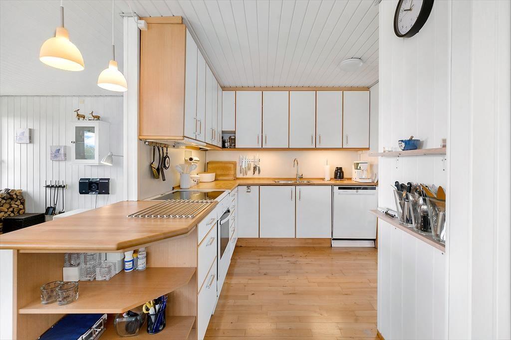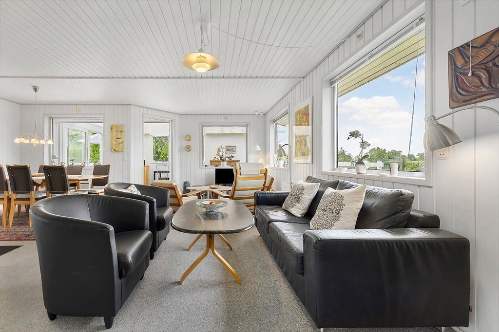Sommerhuset fremstår både lyst og indbydende med en integreret udestue. Det åbne køkken i forbindelse med stuen er samlingspunktet, hvor dagens oplevelser drøftes over en god middag, inden der skal slappes af i sofaen enten med en god bog eller film, imens ilden i brændeovnen syder bag glasset. Huset er udstyret med 6 sovepladser fordelt i 2 værelser og i annekset. Hertil kommer 2 sovepladser i køjeseng i det store værelse, mest til børn/yngre personer.