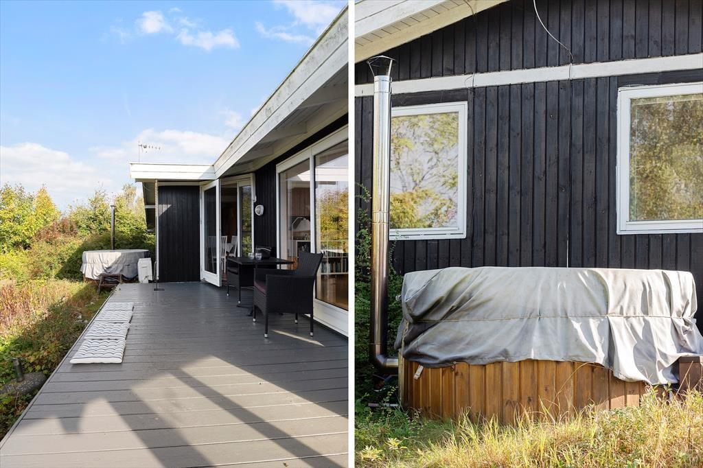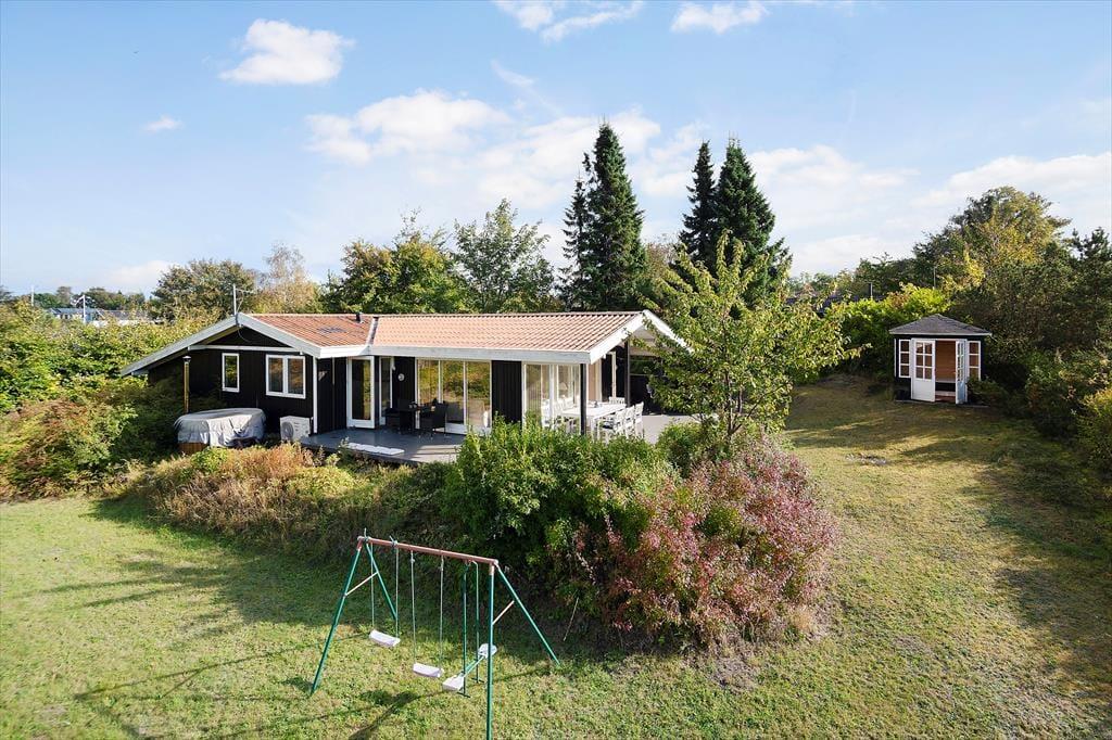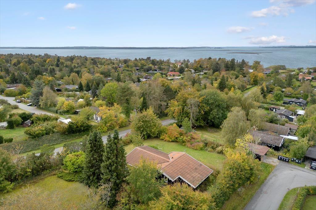 Sommerhuset er beliggende i et roligt område. Fra den store terrasse har man udsigt over området ned mod fjorden den kan ikke beskrives men skal ses. Grunden er med god randbeplantning, så du kan sidde ude i ugenerte omgivelser og nyde solen. Er man til en dukkert, så er det bare at gå den korte vej ned til Vigen eller ned til badebroen ved den store fælles græsplæne hvor der er uendeligt med muligheder for at lege eller bare slappe af på et tæppe. Når aftenen falder på og det er tid til hygge, så kan der tændes op i kulgrillen og tilberedes lækker aftensmad fra grill.