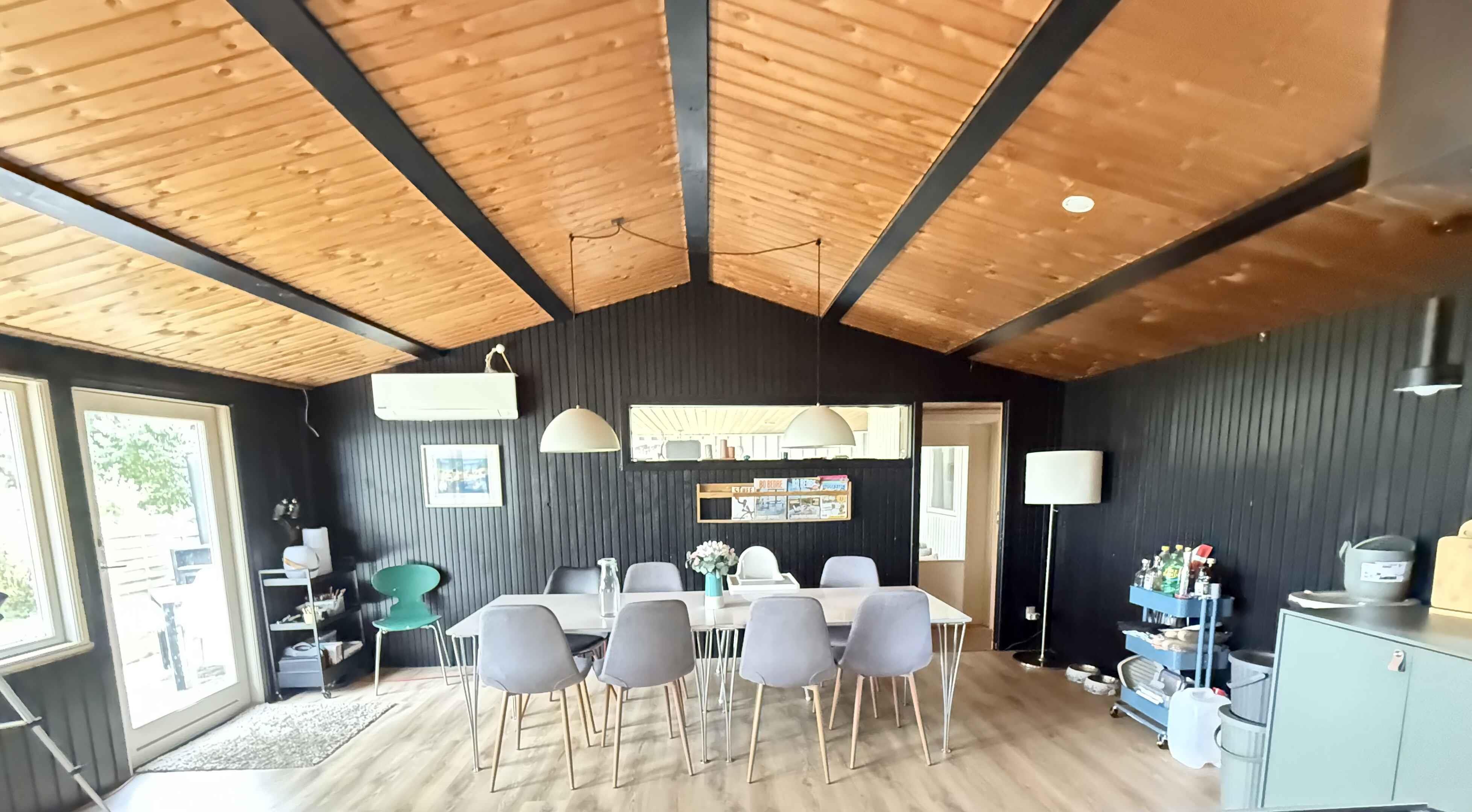 Dette nyrenoverede sommerhus på 90 m² ligger i første række til vandet og byder på direkte fjordudsigt. Her får I en feriebolig, hvor beliggenheden er i centrum, og hvor ro, lys og udsigt er en naturlig del af opholdet fra morgen til aften. Huset er indrettet med tre soveværelser og i alt syv sovepladser. To værelser ligger i hovedhuset, mens det tredje findes i et separat anneks, som giver ekstra privatliv og fleksibilitet for familie eller venner. Opholdsrummene er lyse og funktionelle og indbyder til samvær med udsigten som fast følgesvend. Den nyrenoverede bolig fremstår velholdt og nem at bruge, uanset om ferien bruges på afslapning, fælles måltider eller rolige stunder med kig til vandet. Området omkring sommerhuset er præget af fjord, kyst og åbne landskaber. Vandet ligger lige foran huset og indbyder til badning, kajak, paddleboard eller stille gåture langs kysten. Her opleves fjorden tæt på og i et tempo, hvor naturen får lov at fylde. Der er båd og badebro 100 meter nede af kysten. Jægerspris-området byder på gode cykel- og vandreruter, skovområder og naturoplevelser året rundt. Nordskoven, slotsparken og kyststrækningerne giver mange muligheder for udflugter, uanset om I søger aktivitet eller ro. Der er samtidig nem adgang til indkøb, caféer og lokale seværdigheder. København nås inden for overskuelig afstand, hvilket gør området velegnet til både korte ophold og længere ferier. Her kombineres vandnær beliggenhed med oplevelser og bekvemmelighed. Sommerhuset er et oplagt valg for jer, der ønsker en nyrenoveret feriebolig med fjordudsigt, god plads og en beliggenhed, hvor naturen er lige udenfor døren.