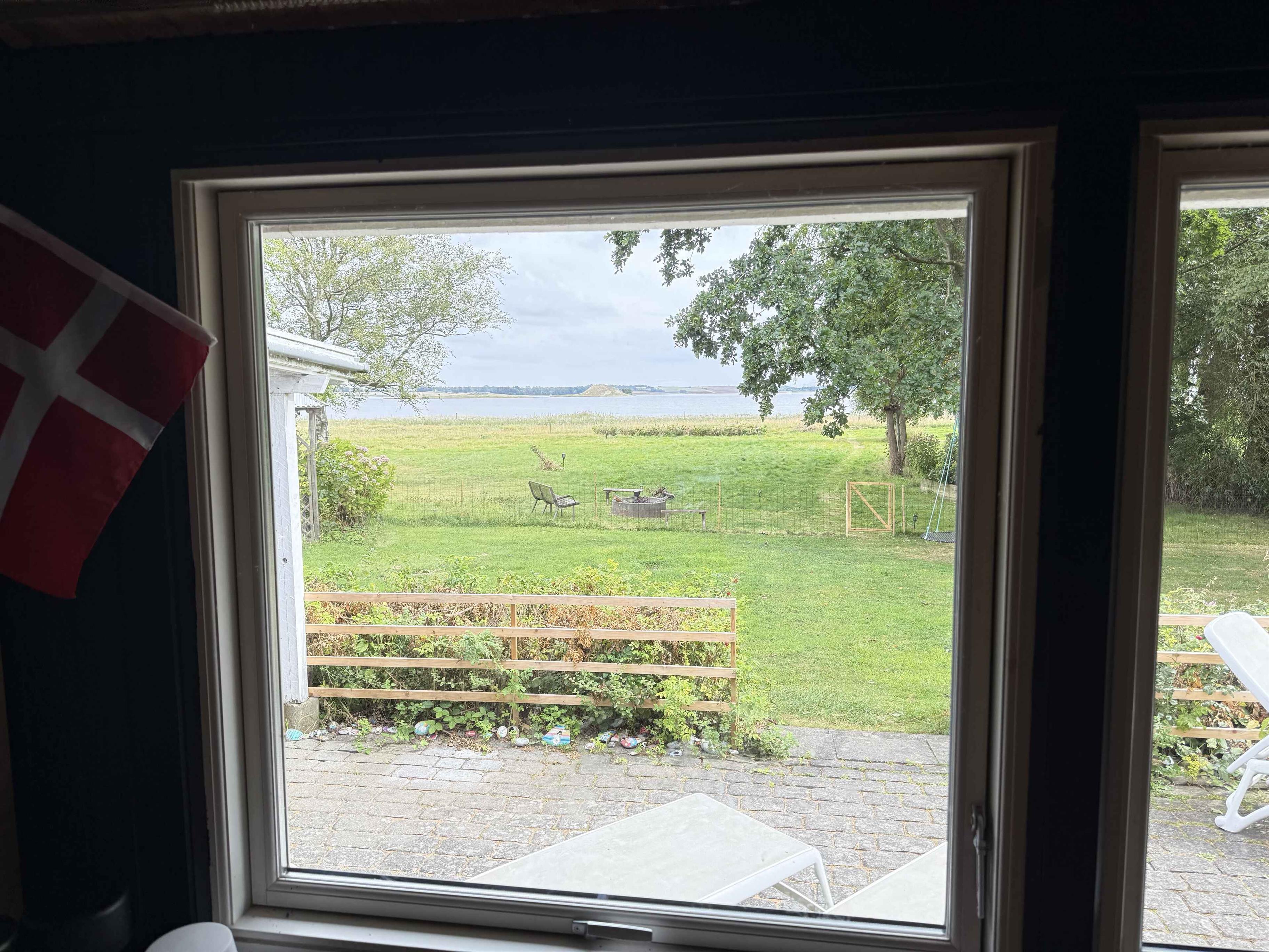 Nyrenoveret sommerhus i første række med direkte udsigt til fjorden og adgang til vandet.