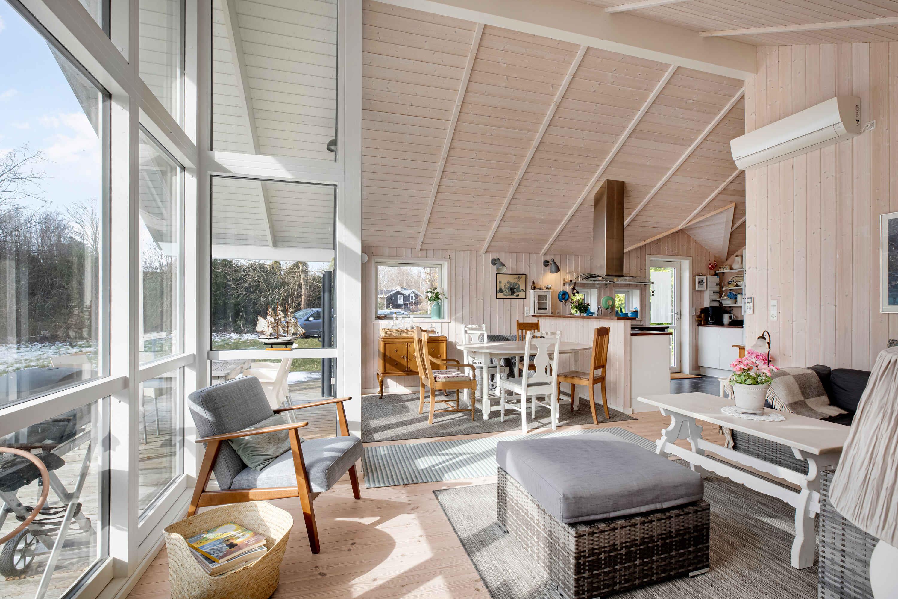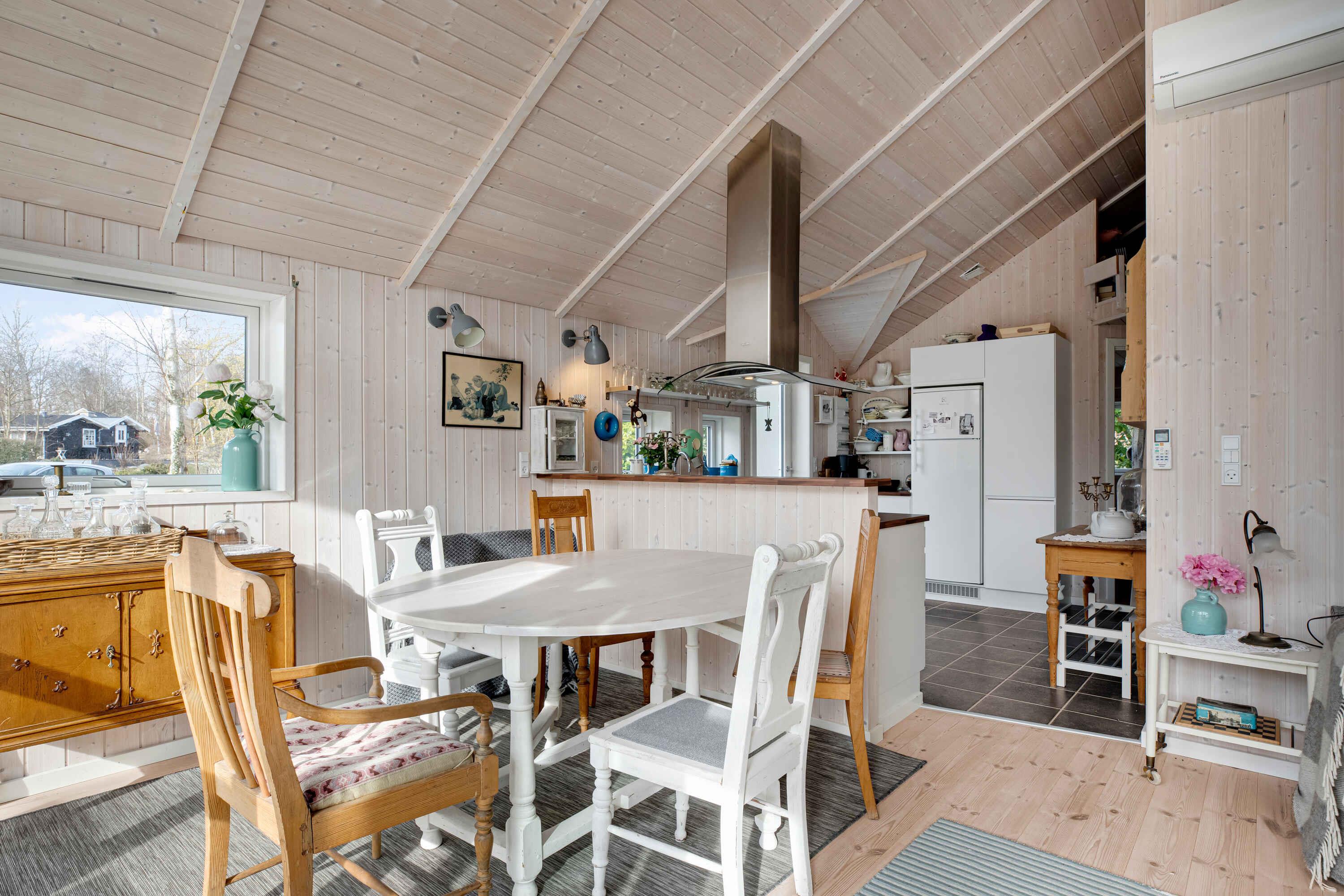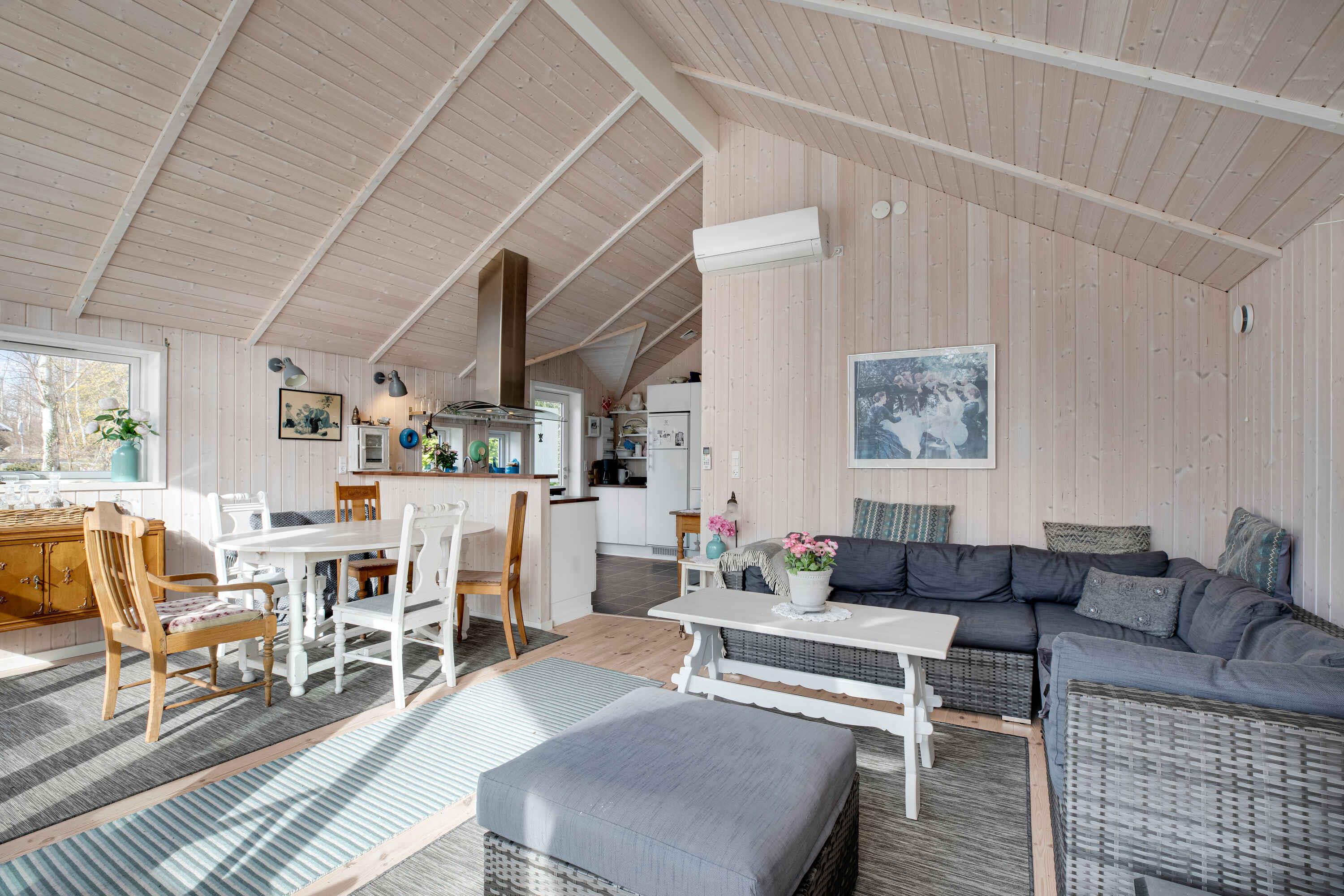 Nyere sommerhus i grønne omgivelser. Den hyggelige indretning får alle til at føle sig hjemme. Udsigten fra stuen til den grønne have giver følelse af at være midt i naturen. Huset har fibernet!