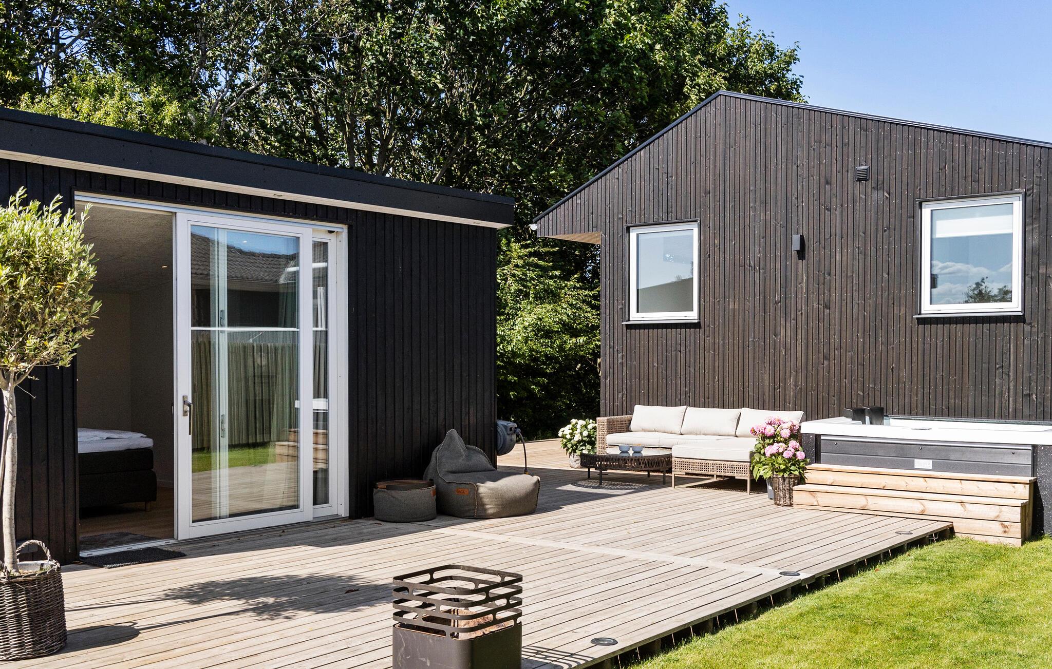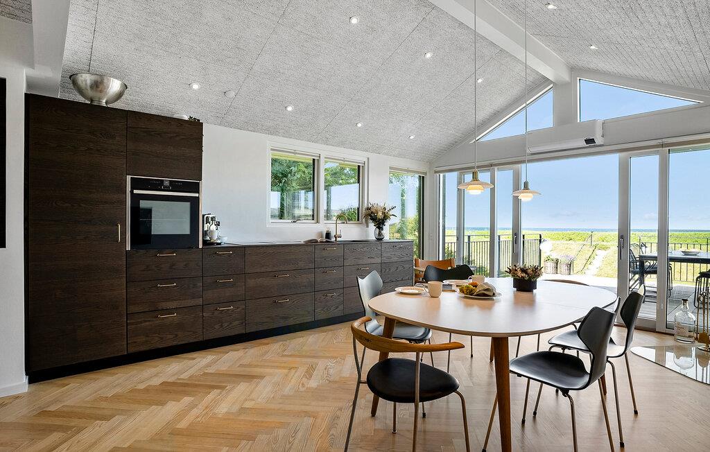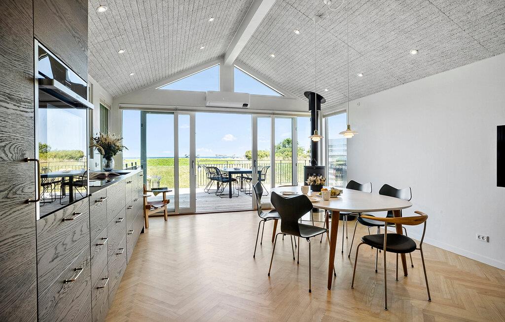 Nyd dette moderne og stilfulde feriehus med havudsigt. Oplev ren afslapning i dette luksuriøse feriehus på Jørgensø Strand. Det moderne design og møbler af høj kvalitet skaber en stilfuld atmosfære, der ikke lader noget tilbage at ønske. Fra den lyse opholdsstue kan I nyde en betagende panoramaudsigt over havet. Det åbne og smukke køkken indbyder til at lave mad sammen om aftenen, mens den store terrasse er ideel til at nyde solen med brusen af havet. Den direkte strandejendom gør dette hus til et særligt tilflugtssted, perfekt til en afslappende ferie med et højt niveau af komfort. Jørgensø Strand byder ikke kun på havets skønhed lige uden for døren, men også adskillige udflugtsmuligheder. Besøg de charmerende byer Otterup og Hasmark, kun en kort køretur væk, eller udforsk det livlige Odense. Om sommeren er regionen kendt for sine mange loppemarkeder og gadeboder, der inviterer jer til at gå på opdagelse. Hvad enten I leder efter vandreture på stranden, vandreture i naturen eller kulturelle oplevelser – omkring Jørgensø Strand finder I alt til at gøre din ferie afvekslende.