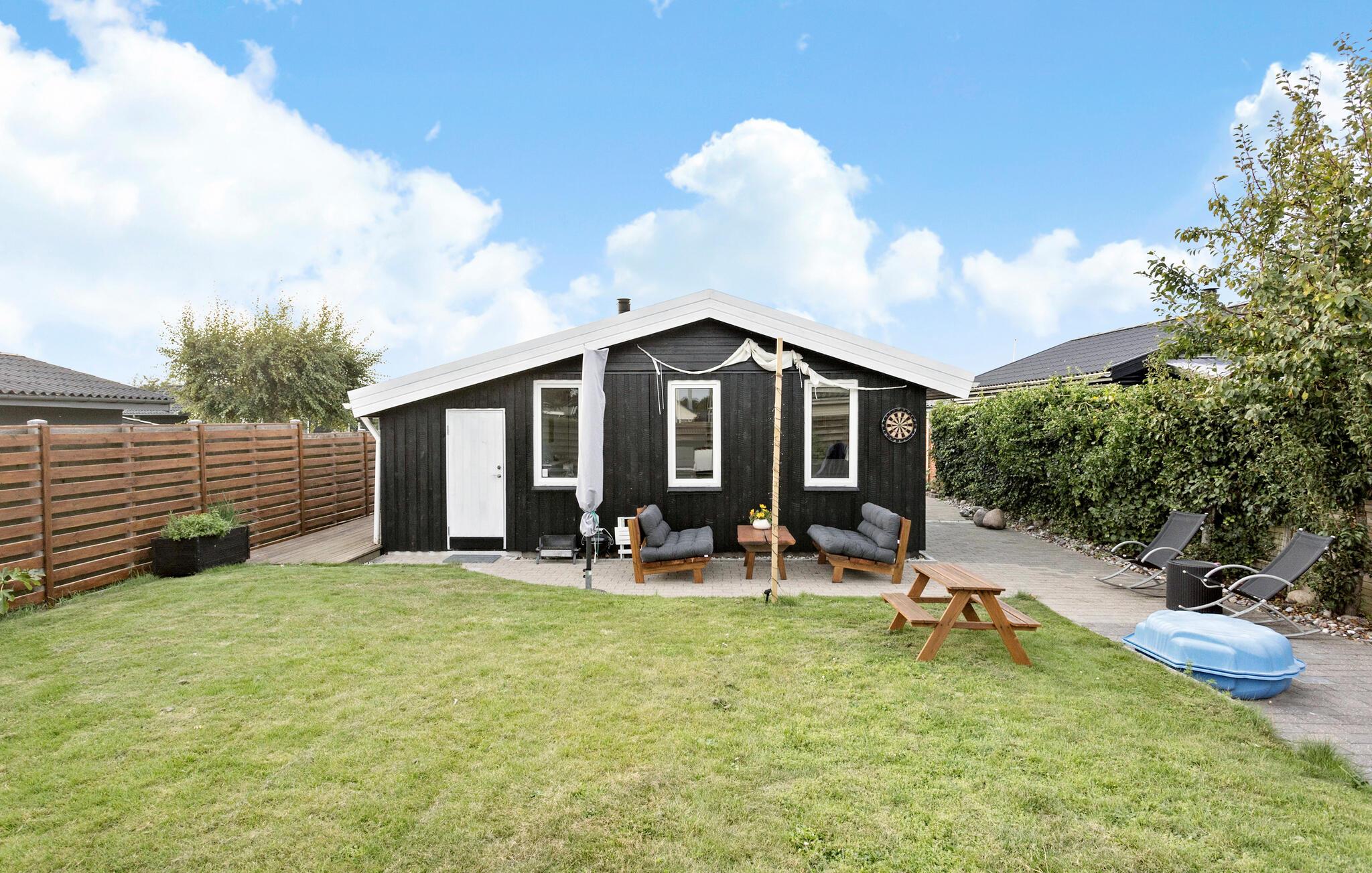Hyggeligt sommerhus få skridt fra stranden med brændeovn og dejlig have i Otterup.