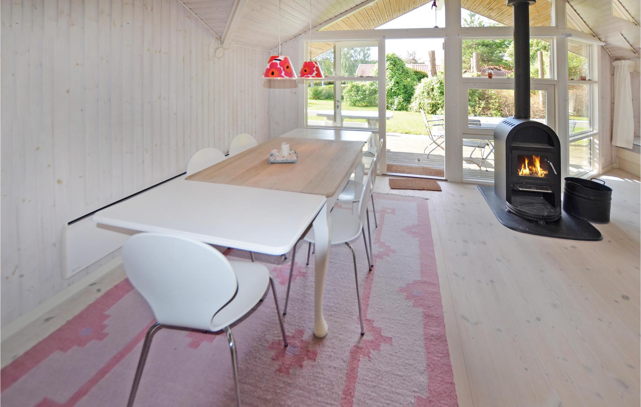 Kun 50 meter fra en familievenlig strand i naturskønne omgivelser ligger dette hyggelige og velindrettede hus på en stor veltilplantet grund. Det dejlige åbne køkken ligger i forbindelse med stuen, som er udstyret med en brændeovn til de kolde dage og aftener. Over alt i huset kan I benytte huset gratis trådløse internet. Badeværelset er udstyret med et spabad, hvor kroppen kan forkæles før eller efter en tur i husets dejlige sauna. Tæt ved huset ligger der en legeplads med masser af muligheder for børn i alle aldre. I Hasmark Feriepark, som ligger i nærheden, er der også restaurant, legeplads og et badeland (åbent i sommerhalvåret).