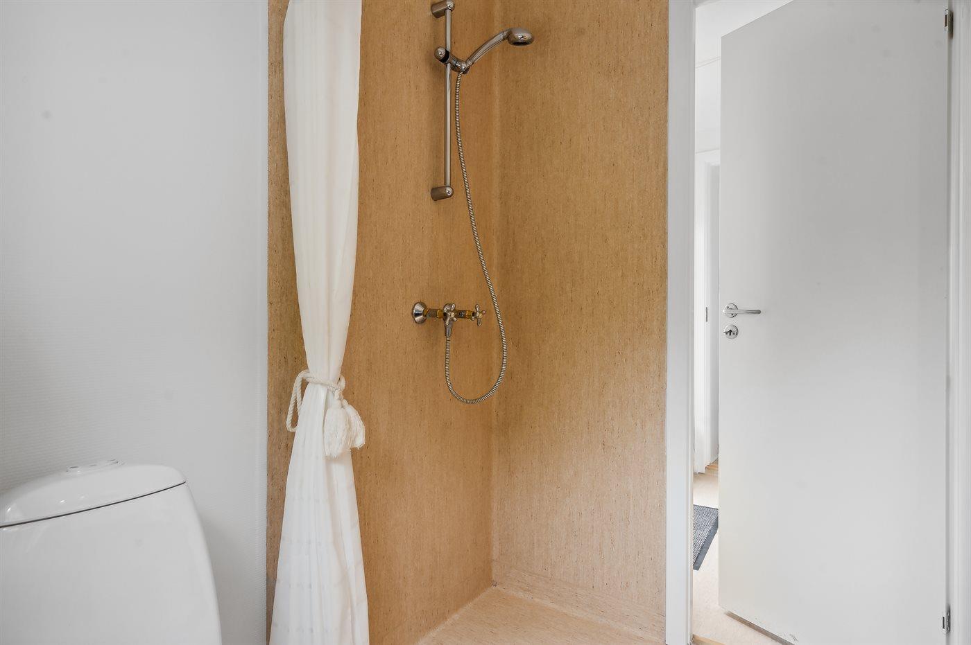 Der er 1 badeværelse med bruseniche og 1 toilet.