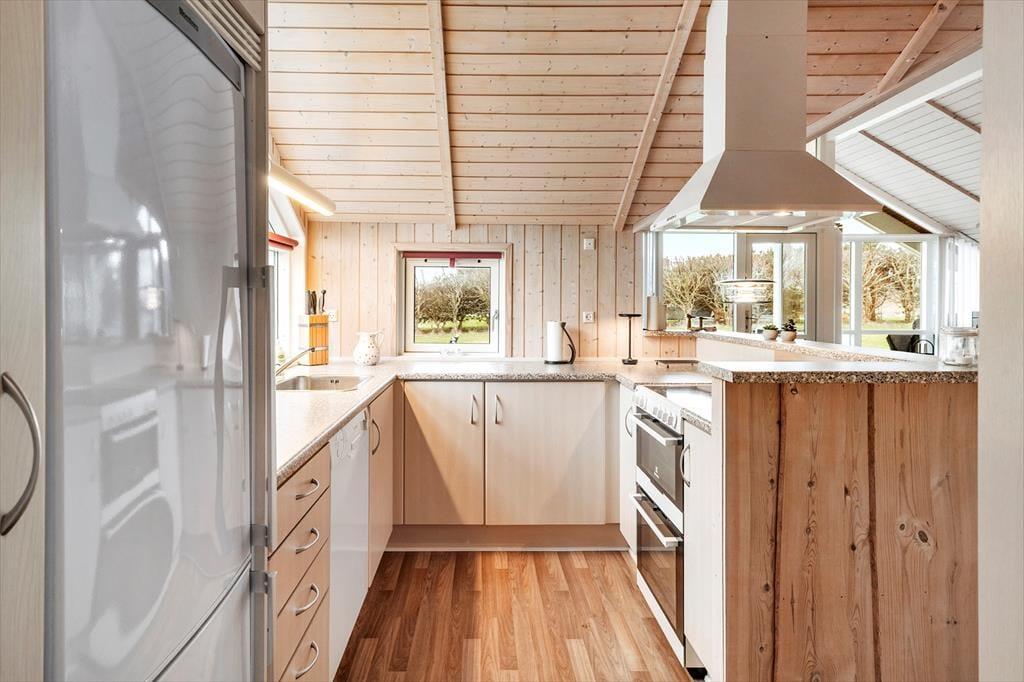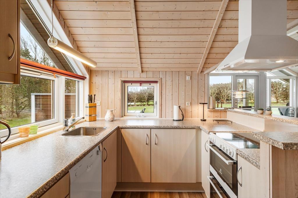 Sommerhus i Thyholm, Limfjorden, med plads til 7 voksne. Der er en hyggelig indretning med bl.a. brændeovn, og du finder desuden vaskemaskine og opvaskemaskine i boligen.
