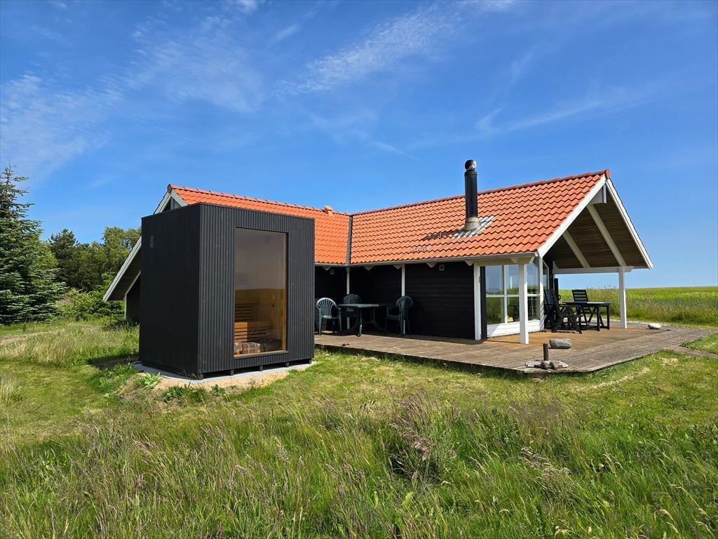 Ferien tager sig særdeles smukt ud, når den foregår i dette dejlige sommerhus. Her bor du nemlig i første parket til kysten i den nordøstlige ende af Jegindø, så du kan se lige ud på Limfjorden fra stuevinduerne – og fra huset har du kort gåafstand til den fine Bøhl Strand, hvis du vil bade, sejle kajak eller bare nyde naturomgivelserne.