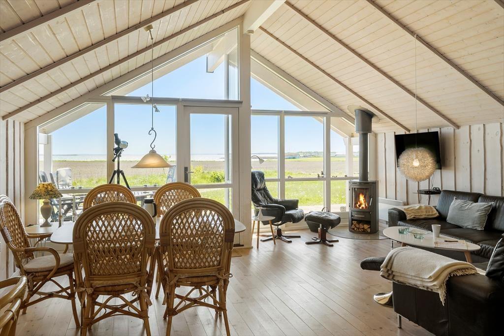 Hvis du trænger til at få en pause fra den travle hverdag, finder du dit åndehul her. Hos Limfjorden er vi i hvert fald overbeviste om, at en følelse af ro og velvære vil indfinde sig straks, når du sidder i stuen og kigger ud over markerne og det åbne vand. Hvis vejret indbyder til det, kan du tænde op i brændeovnen og lave en god kop kaffe for at skrue ekstra op for hyggestemningen – og selv når du står ved kaffemaskinen i det åbne køkken, kan du beundre de smukke naturomgivelser. Ud over husets dejlige stue består planløsningen af et badeværelse, et gæstetoilet og tre soveværelser, så hvis du vil dele ferielivet med venner eller familie, kan det sagtens lade sig gøre.