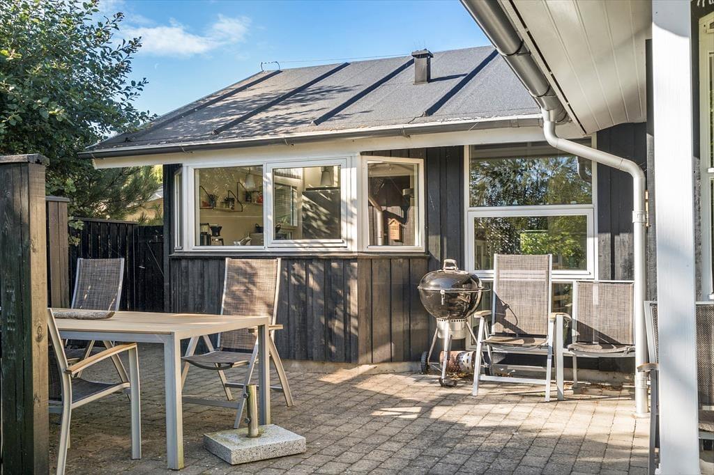 Skinner solen lige fra morgenstunden, kan I åbne stuens havedør og tage dagens første kop kaffe med ud på terrassen. I kan passende starte på det østvendte terrasseområde, og senere på dagen kan I flytte driverlivet hen på den overdækkede Sydterrasse eller på den åbne terrasse mod vest. I kan også finde en skyggefuld krog i den store, velholdte have, hvoraf en del er lukket af, så små børn eller familiens hund kan løbe og lege frit.