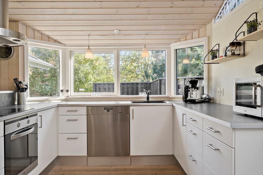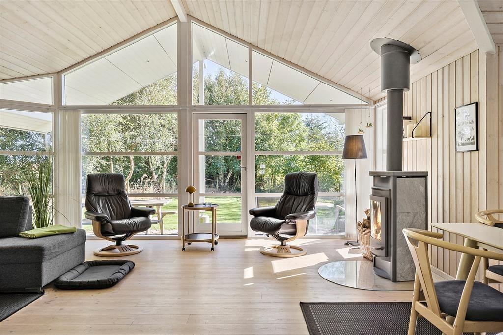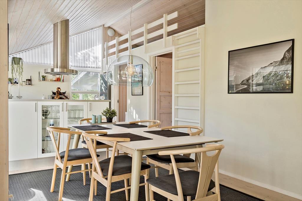 Takket være husets velgennemtænkte planløsning kan I nemt og bekvemt samles op til seks personer til en dejlig fælles ferie. En god del af husets 106 m2 er dedikeret til en stor opholdsafdeling, der består af et veludstyret køkken og en hyggelig stue i åben forbindelse. Brændeovnen og varmepumpen er klar til at levere energivenlig varme på eventuelle kølige aftener, og trænger I til at slappe helt af i sofaafdelingen, kan I slutte dagen af med en god film på fladskærms-tv’et, der har parabol og Chromecast tilsluttet. Tre gode soveværelser hører med til planløsningen foruden et rummeligt badeværelse, der er udstyret med bruser, vaskemaskine og gulvvarme.