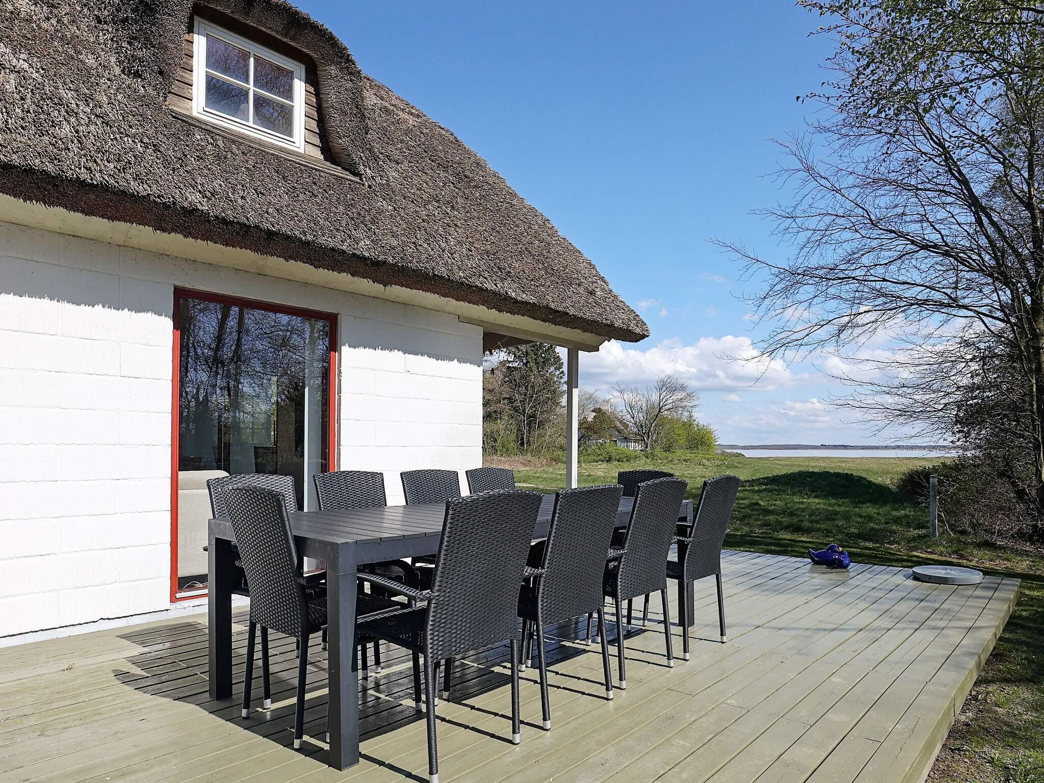 På en 15000 m2 stor naturgrund som går helt ned til stranden på Jegindø ligger dette sommerhus med panoramaudsigt og en privat sti direkte til kysten og den børnevenlige sandstrand. Sommerhuset med stråtag er opført i to plan og både fra stueplan og første sal er der en utrolig udsigt over vandet. Første sal er indrettet med et stort opholdsrum med en stor altan med den flotteste udsigt. Stueplan er indrettet med et stort, kombineret opholds/spisestue og køkken. Opholdsstuen er bl.a. udstyret med tv, siddegruppe, brændeovn samt bluetooth højtaler. Der er installeret gratis internet i huset. Spisepladsen er ved de store panoramavinduer, så I kan nyde udsigten sammen med maden. Det veludstyrede køkken har bl.a. opvaskemaskine, keramiske kogeplader og emhætte. Tre soverum, alle med dobbeltsenge. Lyst badeværelse med bruseniche og gulvvarme. Der findes båden en babyseng samt en højstol i huset. Der er en hyggelig bålplads i haven. Udlejes ikke til ungdomsgrupper.