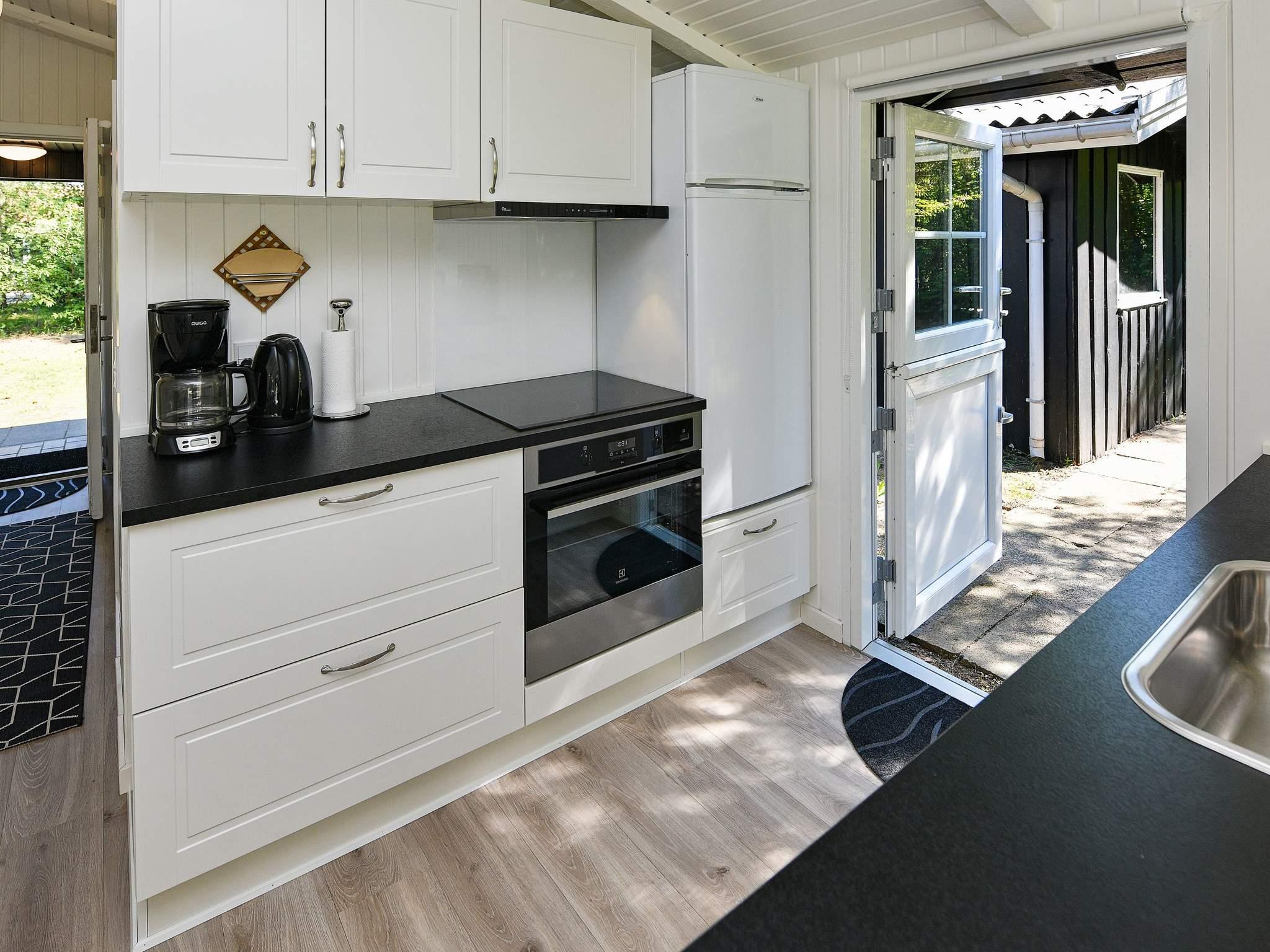Sommerhus renoveret i 2018 roligt beliggende på grund omgivet af træer og for enden af en blind vej ved Jegum. Det veludstyrede sommerhus byder bl.a. på energivenlig luft/luft varmepumpe, 50/50 Mbit fibernet og både danske og tyske tv kanaler. Huset indbyder til hygge med sine 43 m2, som føles meget større, da sommerhuset er lyst og optimalt indrettet samt møbleret med komfortable møbler. Fra den kombinerede opholds- og spisestue, som ligger i åben forbindelse med husets køkken, er der udsigt til den omkringliggende natur via de store vinduespartier. Her kan I sidde, mens I hygger jer foran tv'et eller mens I spiller brætspil. Udover badeværelset med bruseniche, gulvvarme og vaskemaskine er der 3 soverum med i alt 5 sengepladser. 2 af soverummene er med dobbeltseng, mens det sidste er med 1 enkeltseng.Udenomsarealet indbyder til leg med boldspil, og der er indrettet en rigtig hyggekrog med grill, hvor I kan nyde aftensolen under aftensmåltidet. Skiftedag er fredag/fredag.