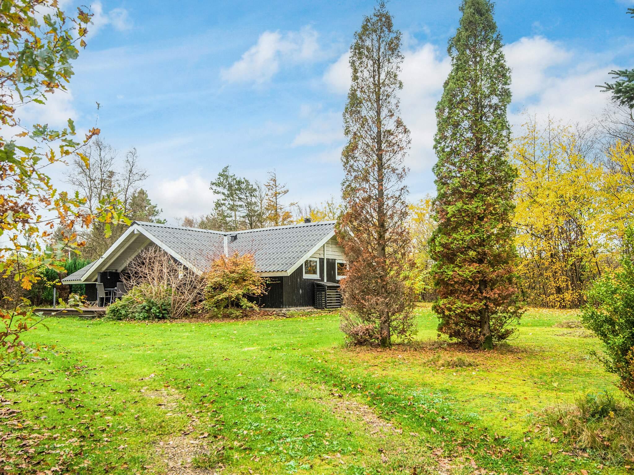 Rummeligt sommerhus roligt beliggende på en stor grund for enden af lukket vej. Indrettet med hyggelig møblement. Der er rummelig opholds- og spisestue i åben forbindelse med køkkenet og med et stort, vestvendt vinduesparti med udsigt til den omkringliggende natur. I opholdstuen finder I bl.a. brændeovn, stereoanlæg med cd-afspiller og Bluetooth samt tv. Foruden badeværelset, hvor I også finder vaskemaskinen, er sommerhuset indrettet med tre soveværelser. Både øst- og vestvendte terrasser som er overdækkede.