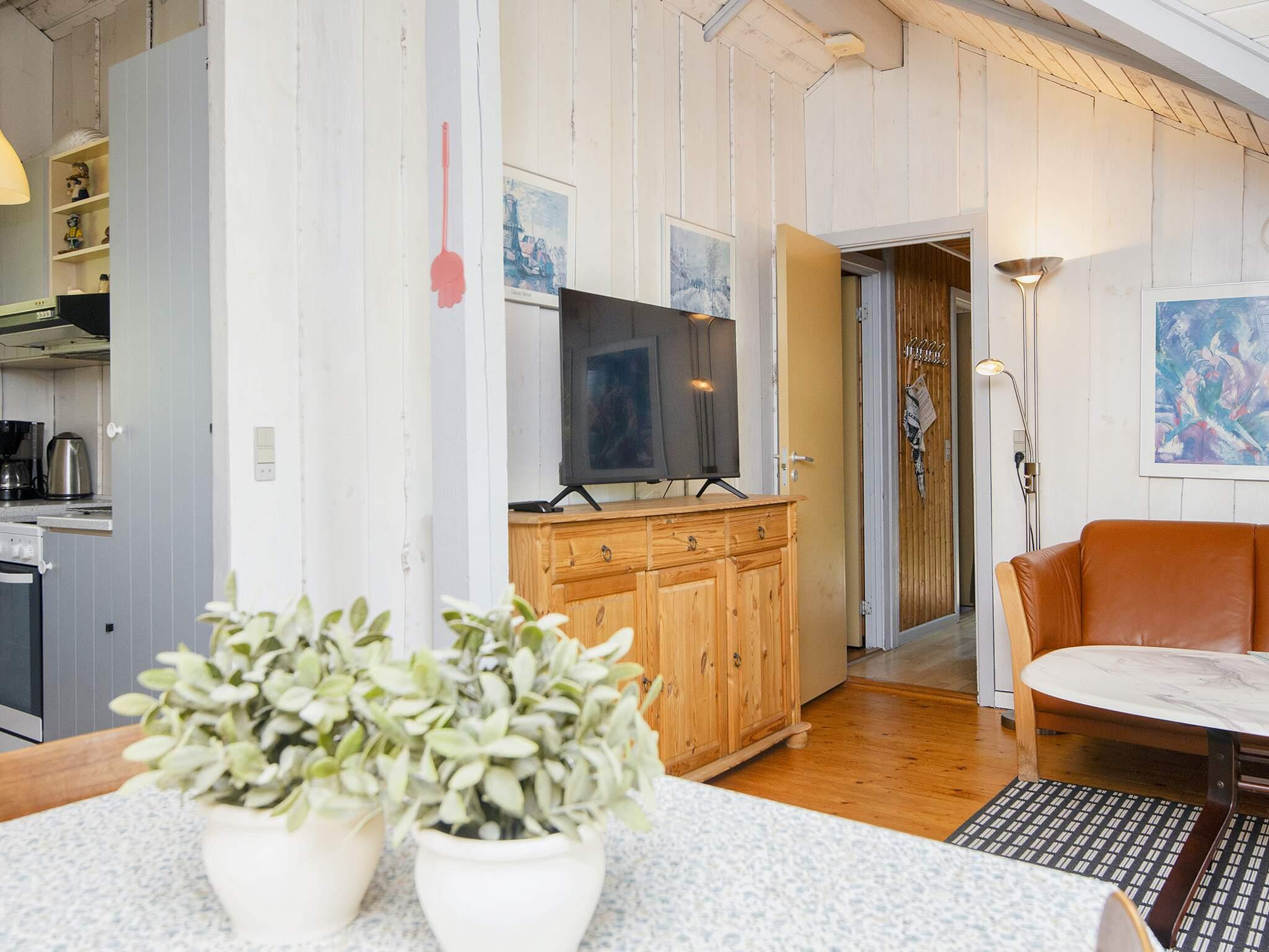 Velholdt sommerhus tæt beliggende ved centerområdet i Jegum Ferieland. Indvendig er huset hvidmalet, komfortabelt møbleret og har et stort vinduesparti mod haven og terrassen, som giver en hyggelig og imødekommende stemning i huset. Derudover er huset bl.a. udstyret med gratis trådløst internet og kabel-tv. Sommerhusets køkken ligger i åben forbindelse med den kombinerede opholds- og spisestue, hvorfra der er udgang til terrassen. Foruden badeværelset med bruseniche er der 2 soverum. Det er muligt at parkere lige ved indgangsdøren. Udlejes ikke til ungdomsgrupper. Gratis adgang til Svøm & Leg samt 1 times gratis bowling pr. dag i Sportium i Varde.
