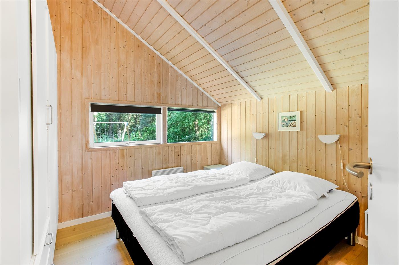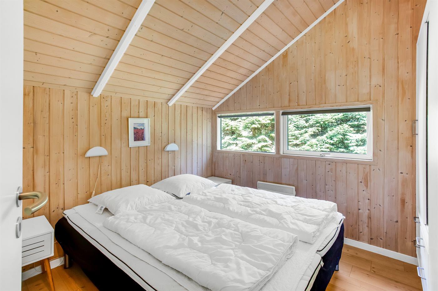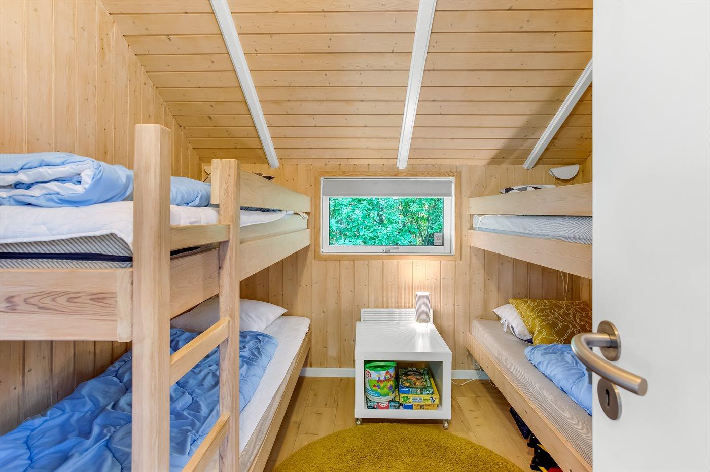 Der er i alt 3 soveværelser. Sovepladserne fordeler sig på: 4 sovepladser i dobbeltsenge. 4 sovepladser i køjesenge. Derudover er der 1 stk. barneseng.