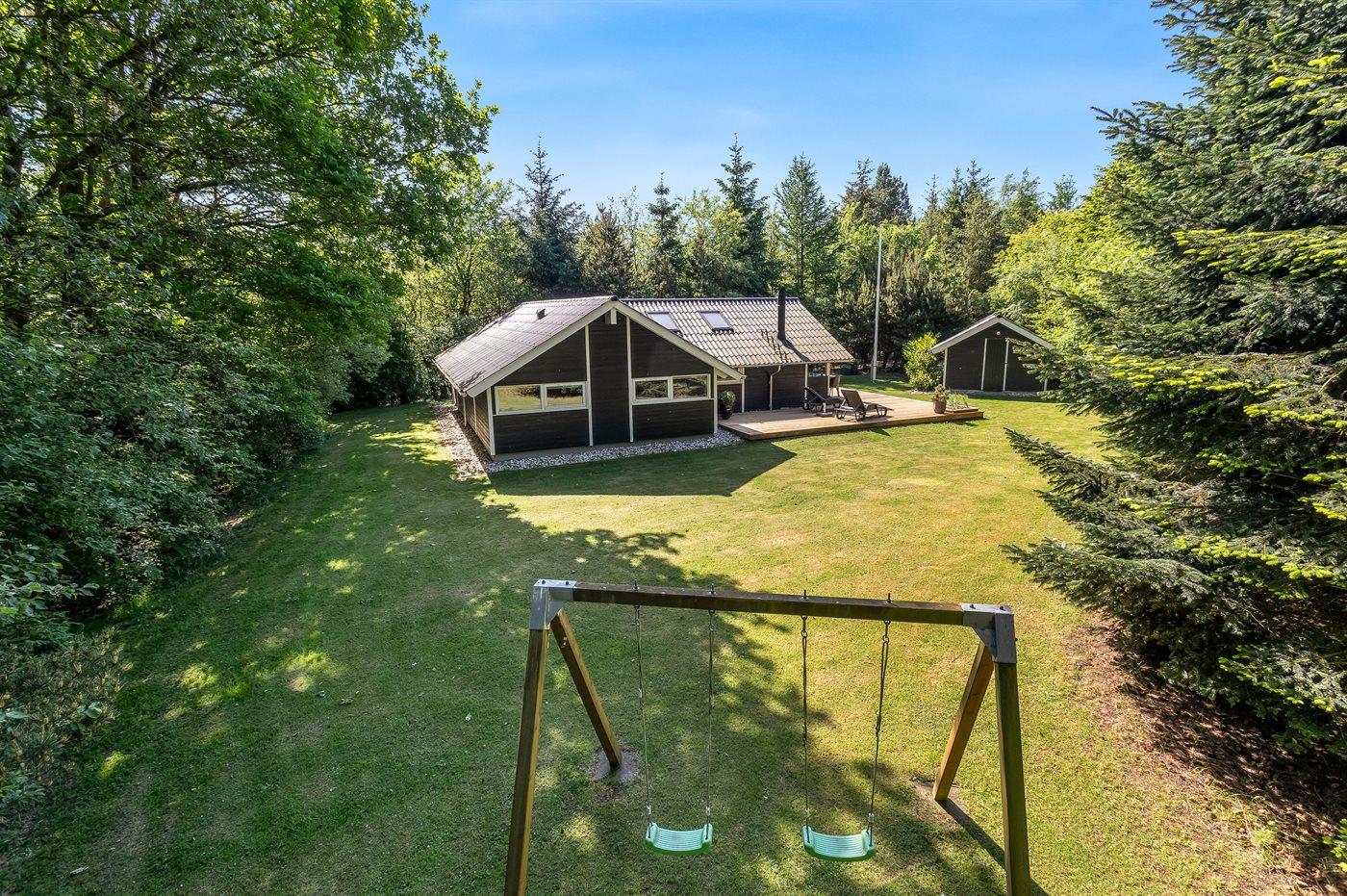 Ferieboligen er beliggende på en 1778 m² stor naturgrund. Der er 12000 m til havet. Nærmeste forretning er beliggende i en afstand af 700 m. Til ferieboligen hører 65 m² terrasseareal. Desuden er der 15 m² overdækket terrasse. Der er redskabsrum. Gynge. Der er carport til rådighed. Parkering ved ferieboligen.
