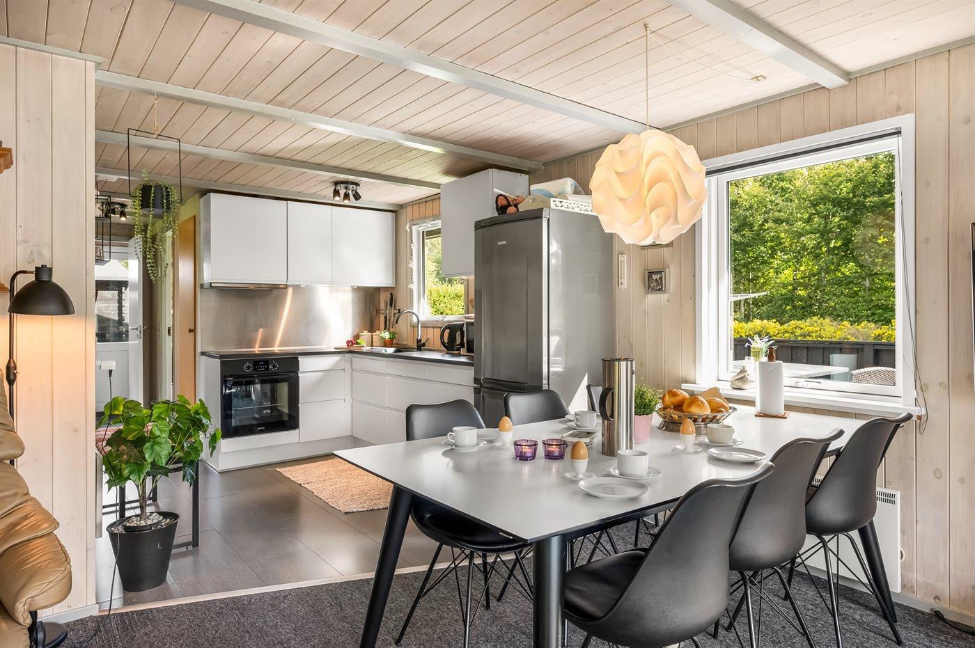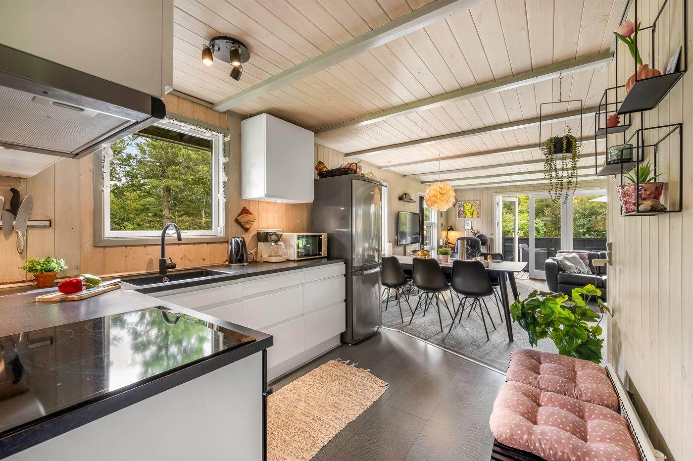Køkkenet er udstyret med 1 køleskab. Der er 4 induktionskogeplader, varmluftovn, mikrobølgeovn, Airfryer.