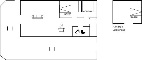 Der er i alt 3 soveværelser. Sovepladserne fordeler sig på: 4 sovepladser i dobbeltsenge. 4 sovepladser i køjesenge. 2 af disse sovepladser befinder sig i anneks.
