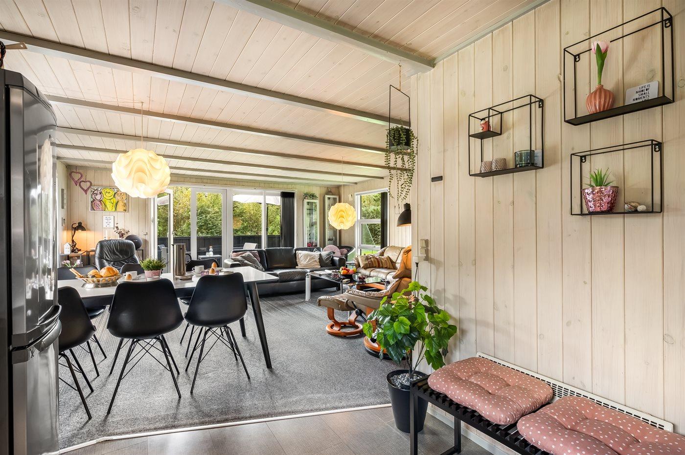 Sommerhus beliggende i rolige omgivelser på en lukket grund, hvor hygge og samvær er i fokus.