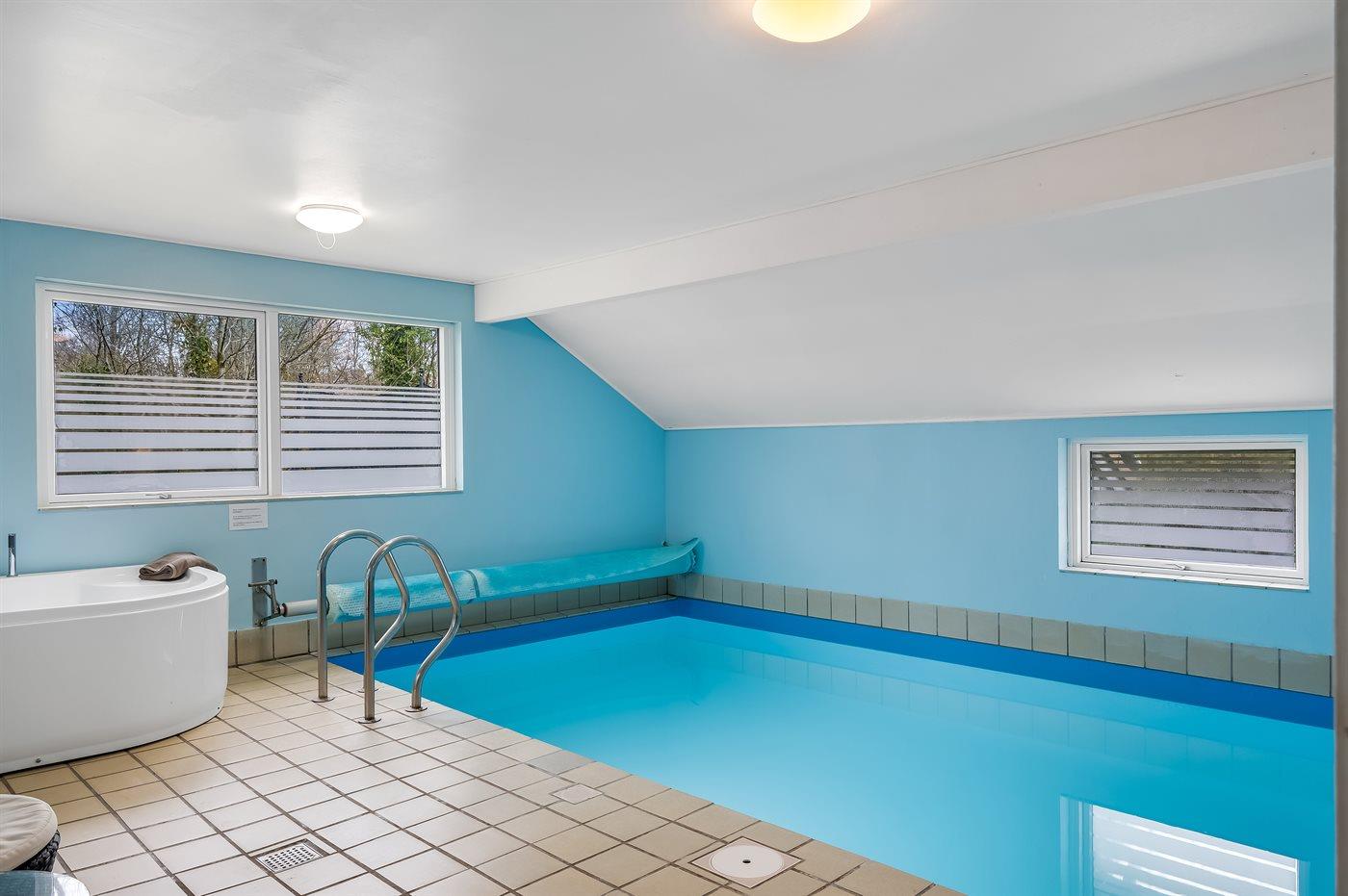 I den indendørs swimmingpool er der mulighed for leg og hyggeligt samvær. Swimmingpoolen måler op til 2,8 m i bredden, 5,5 m i længden og den er op til 1,3 m dyb. Vandet er mellem 24 og 28° C varmt.