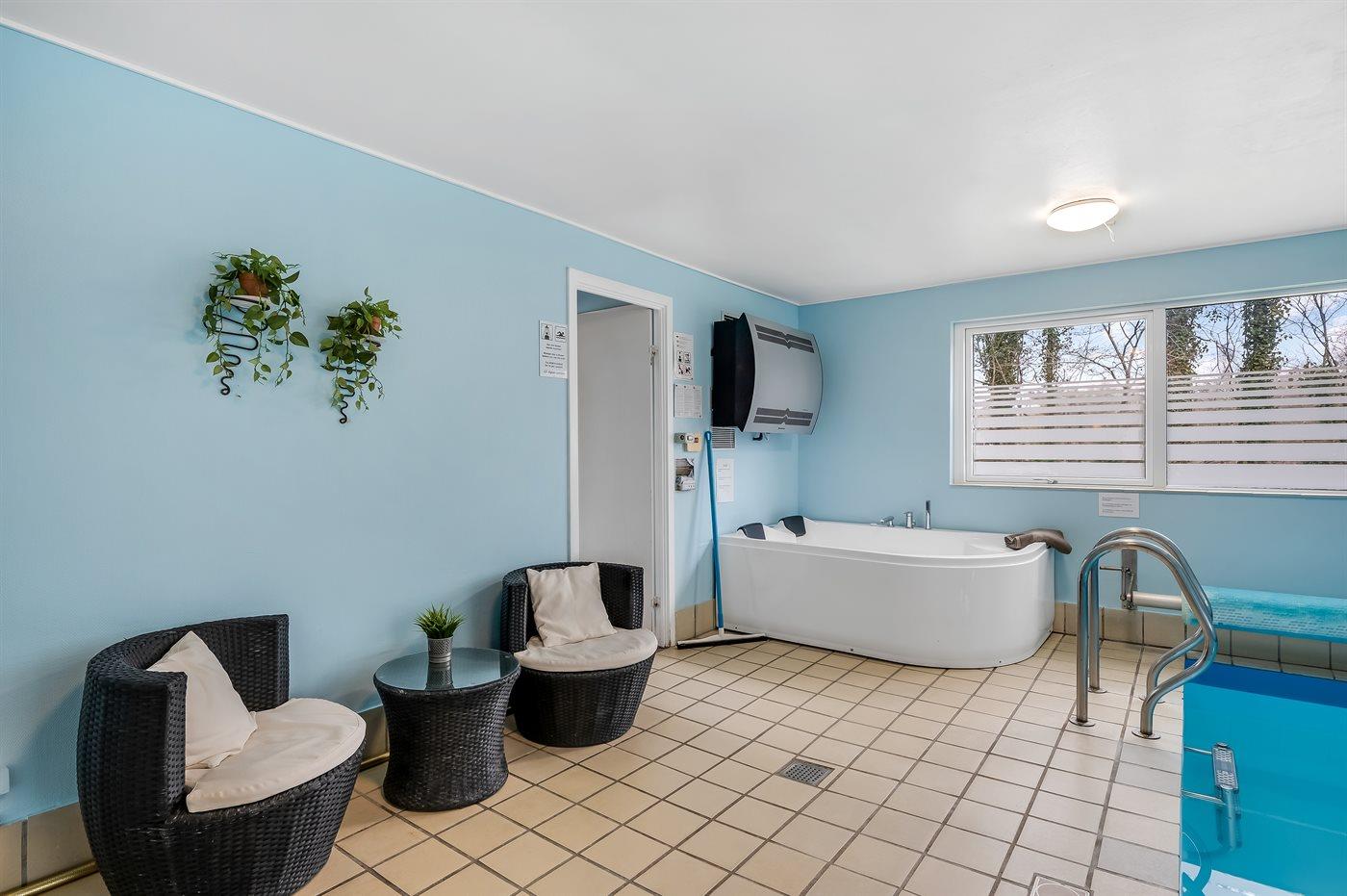 Der er mulighed for afslapning i indendørs spa til 2 personer.