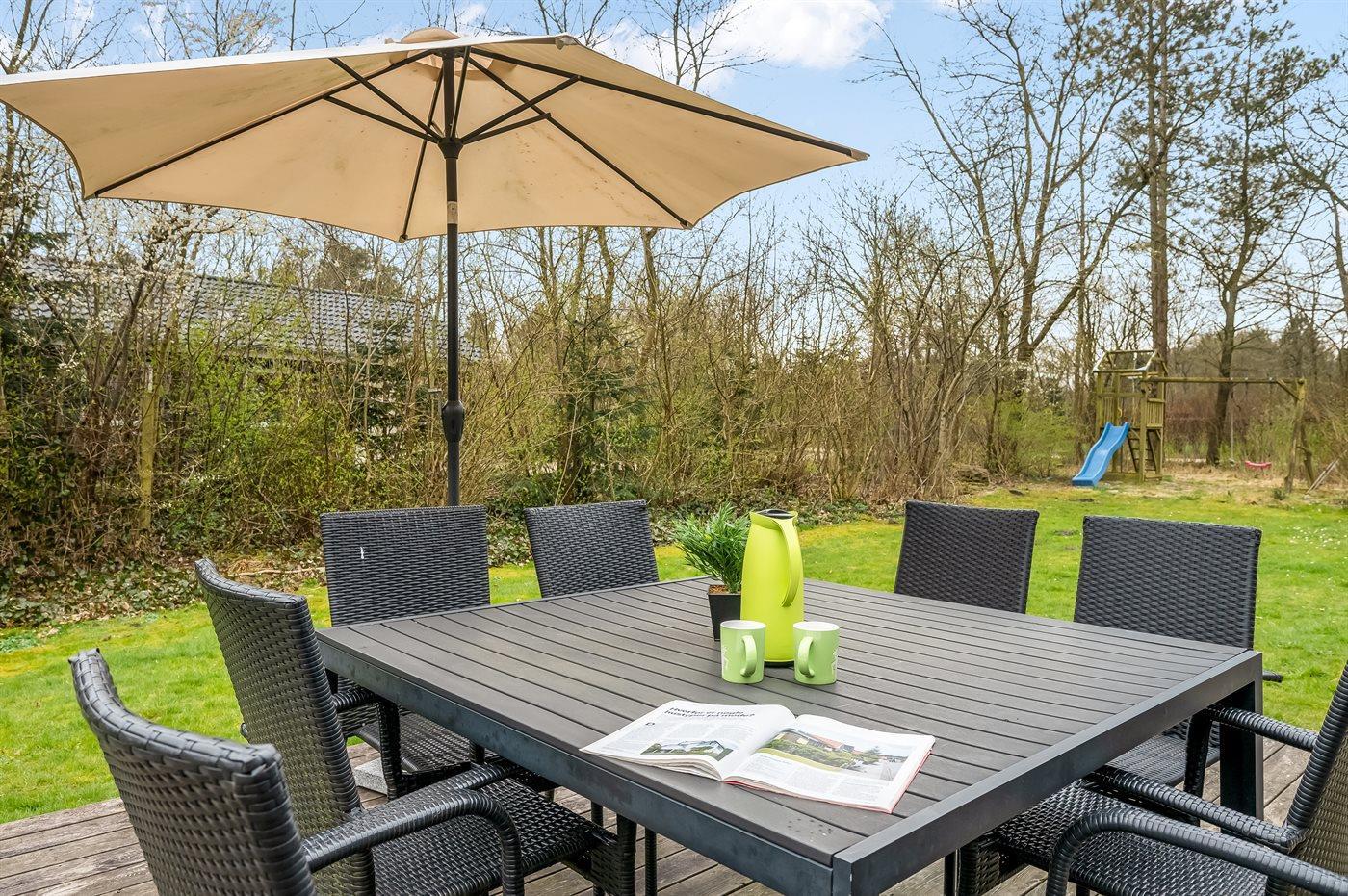 Ferieboligen er beliggende på en 1579 m² stor naturgrund. Der er 10000 m til havet. Der er en sø i en afstand af 200 m. Nærmeste forretning er beliggende i en afstand af 5000 m. Til ferieboligen hører åbent terrasseareal. Gynge. Sandkasse. Trampolin. Legetårn. Rutchebane. Der ligger en legeplads i en afstand af 400 m. Grill til rådighed. Parkering ved ferieboligen.