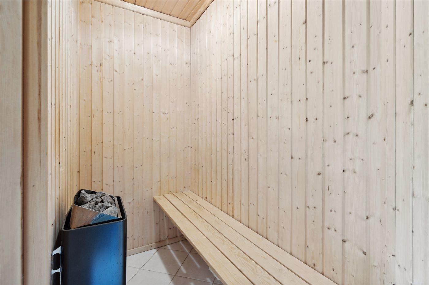 Der er 1 badeværelse med bruser og 2 toiletter, heraf 1 gæstetoilet. Der er gulvvarme på 1 badeværelse. I saunaen er der mulighed for afslapning.