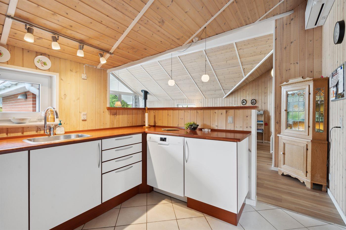 Køkkenet er udstyret med 1 køleskab. Der er 4 keramiske kogeplader, varmluftovn, mikrobølgeovn samt opvaskemaskine.