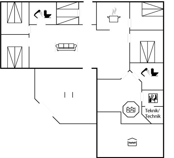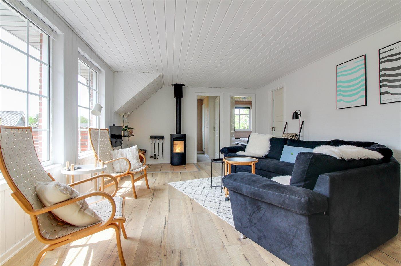 Der er i alt 5 soveværelser. Sovepladserne fordeler sig på: 8 sovepladser i dobbeltsenge. 2 sovepladser i enkeltsenge. Derudover er der 1 stk. barneseng.