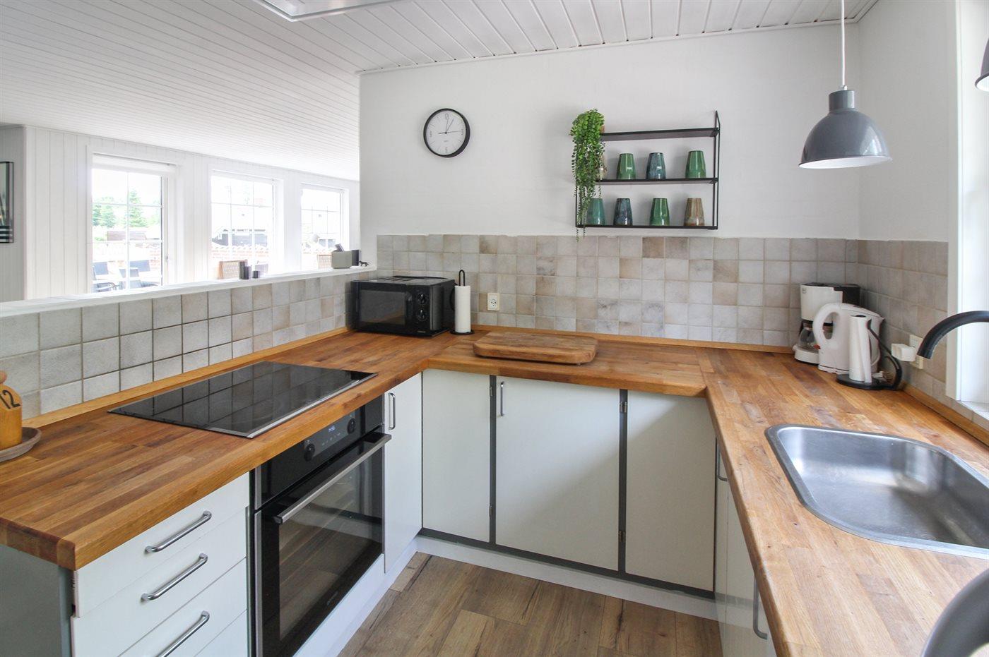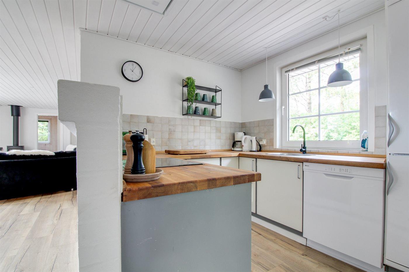 Køkkenet er udstyret med 1 køleskab. Der er 4 keramiske kogeplader, varmluftovn, mikrobølgeovn samt opvaskemaskine.