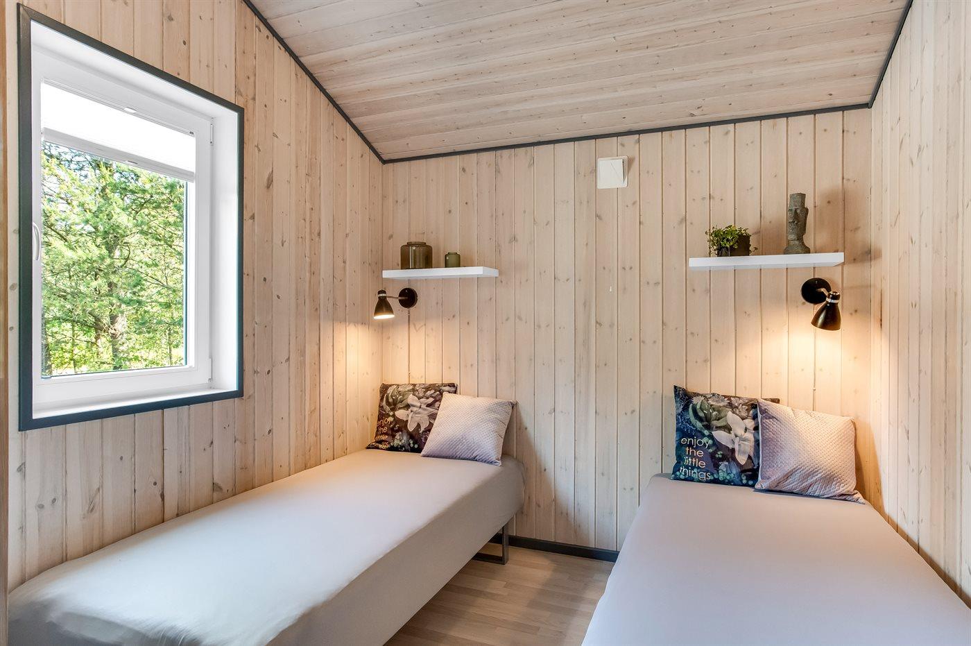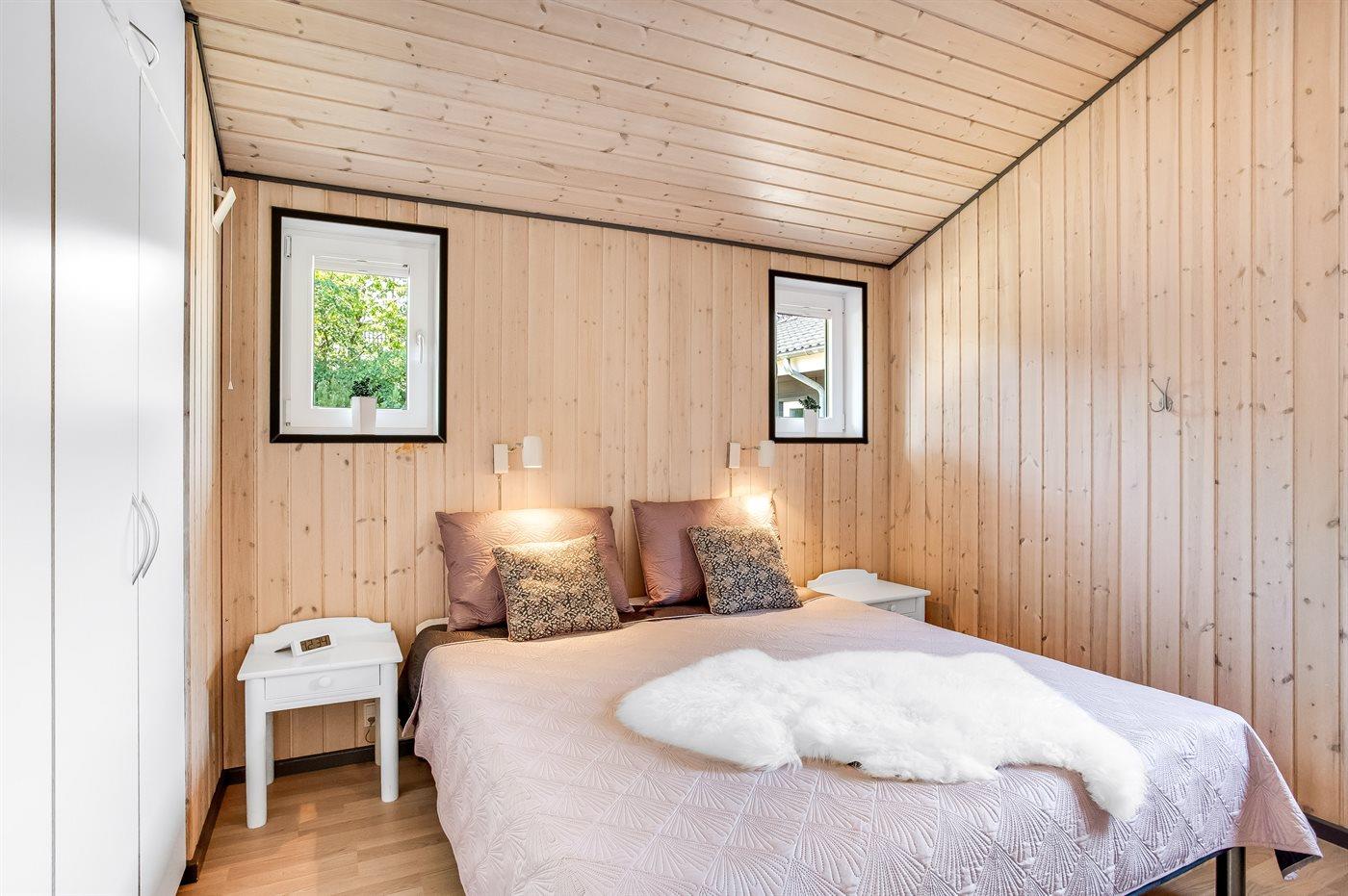 Der er i alt 3 soveværelser. Sovepladserne fordeler sig på: 4 sovepladser i dobbeltsenge. 2 sovepladser i enkeltsenge. Derudover er der 1 stk. barneseng.