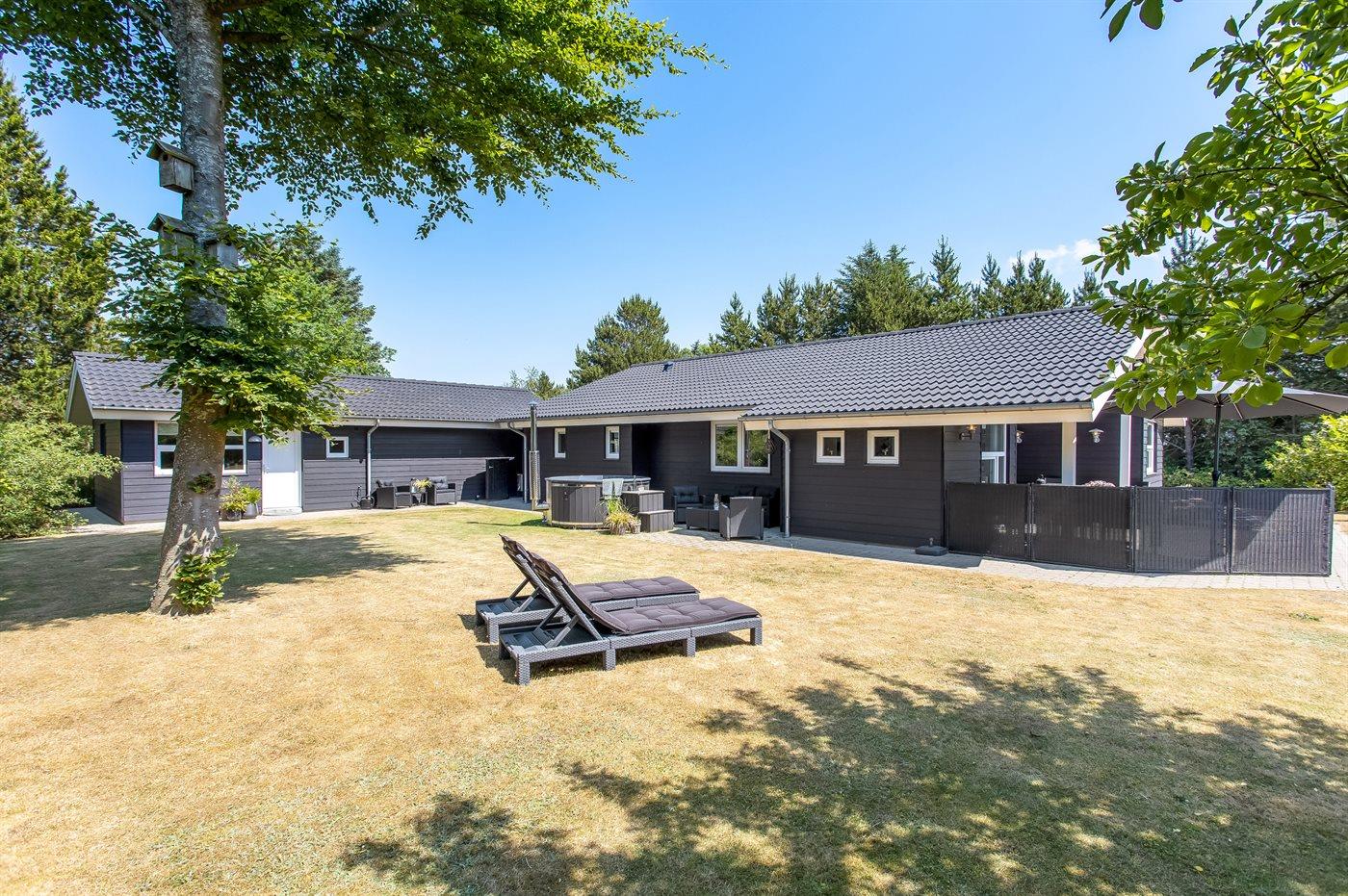 Rummeligt sommerhus med aktivitetsrum og spa på en stor naturgrund nær Oksbøl.